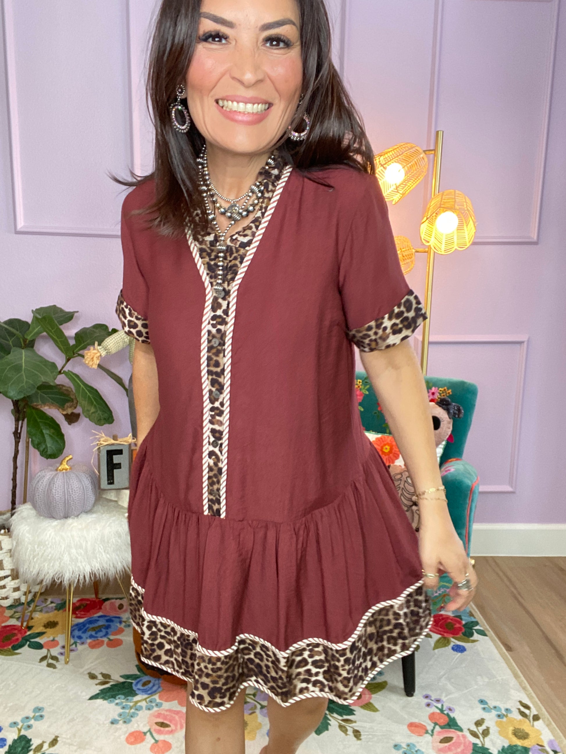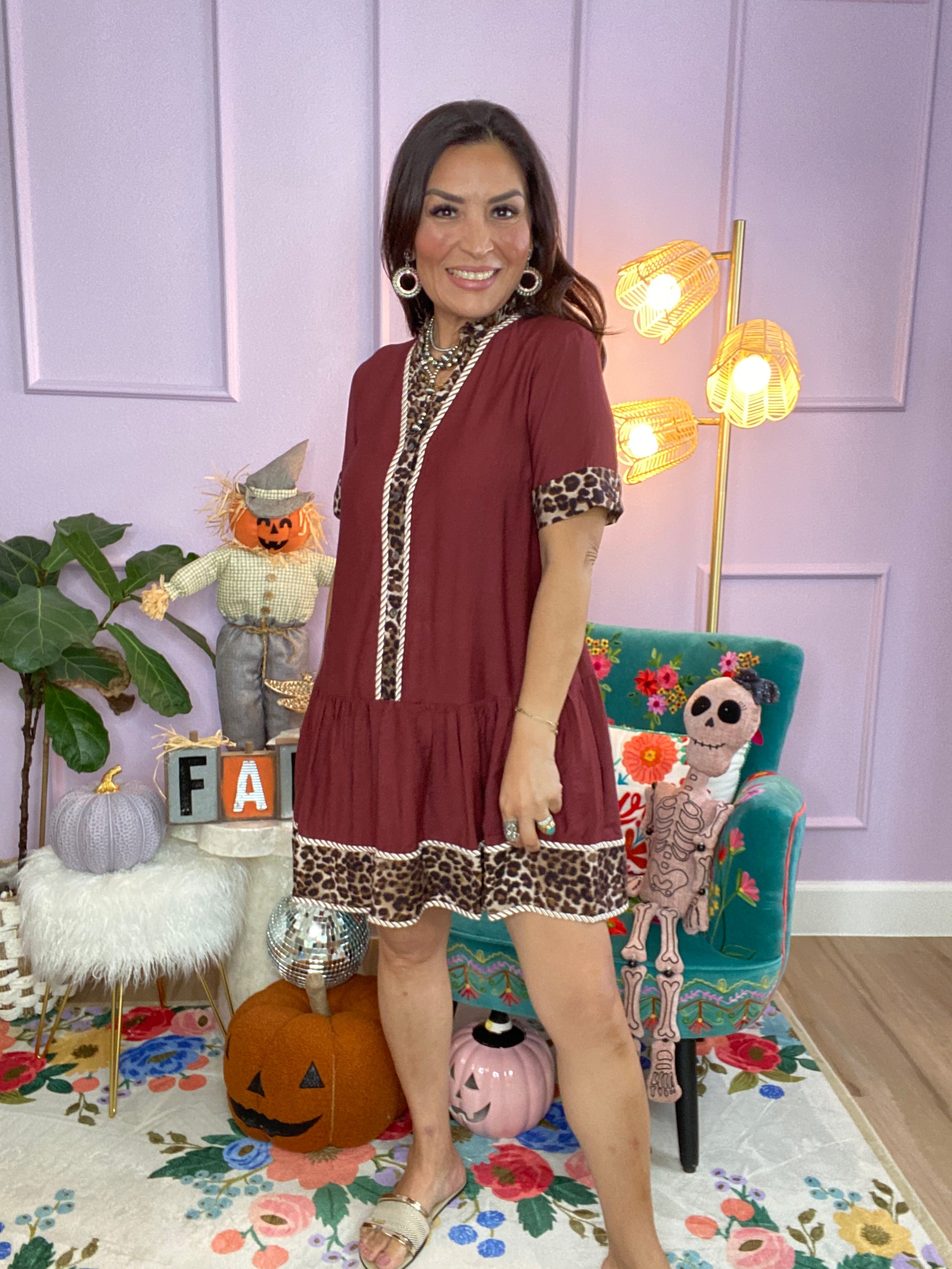 ✨ Solid Short Sleeve Mini Dress ✨ - WINE
