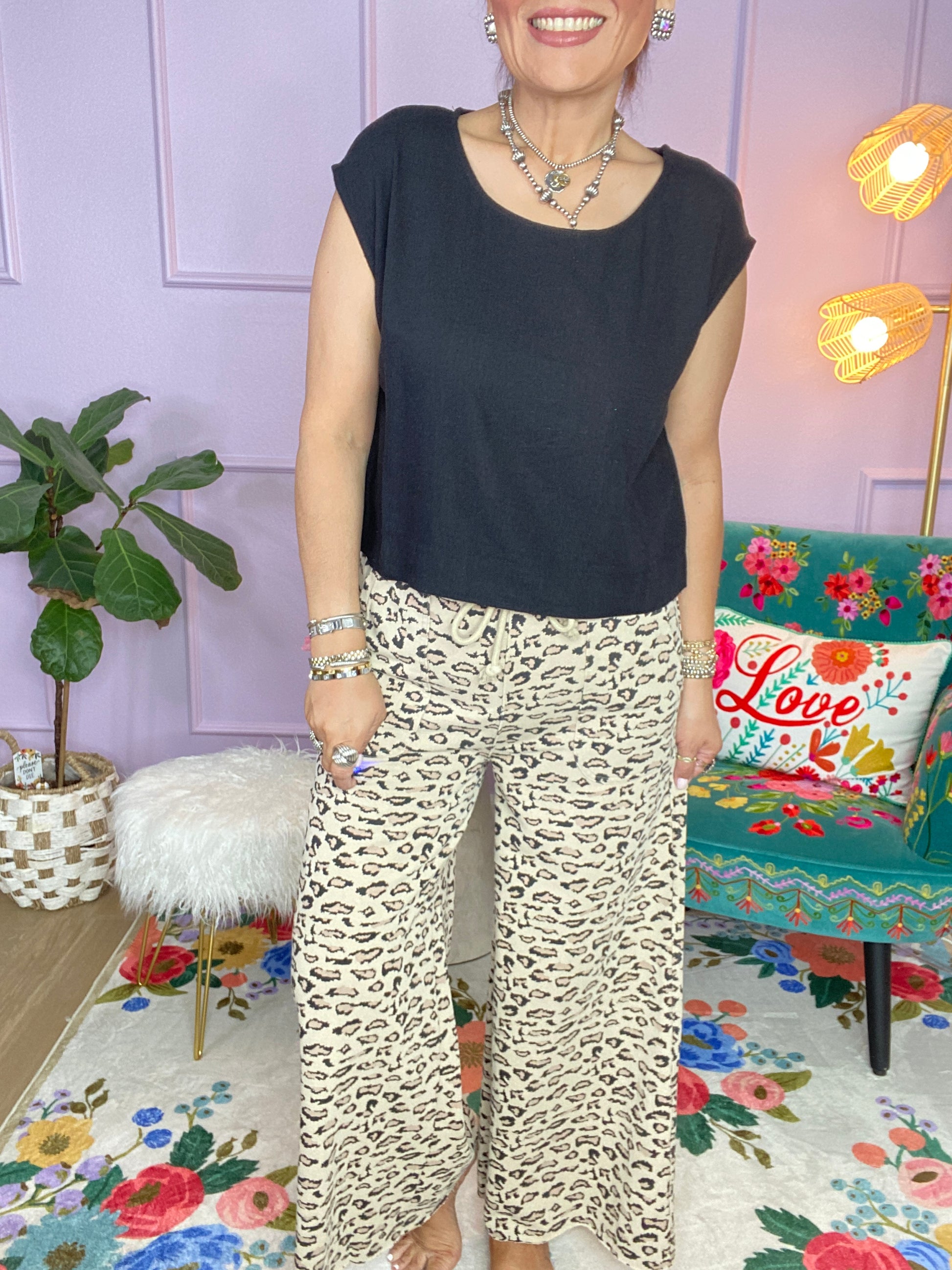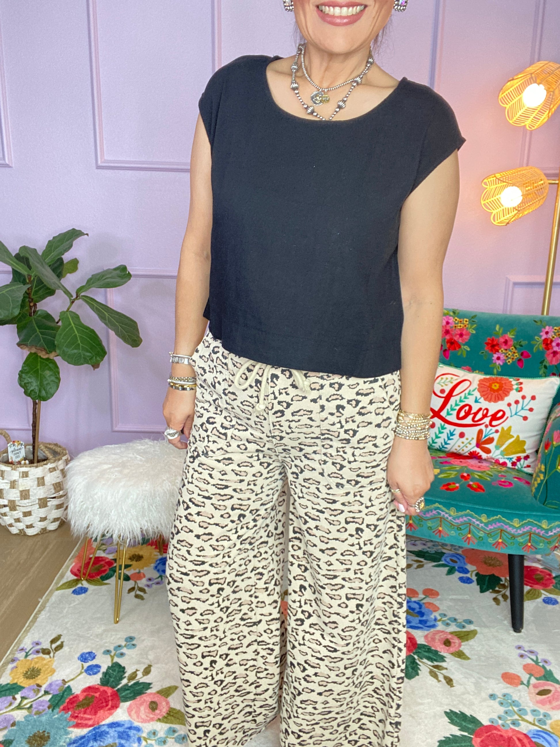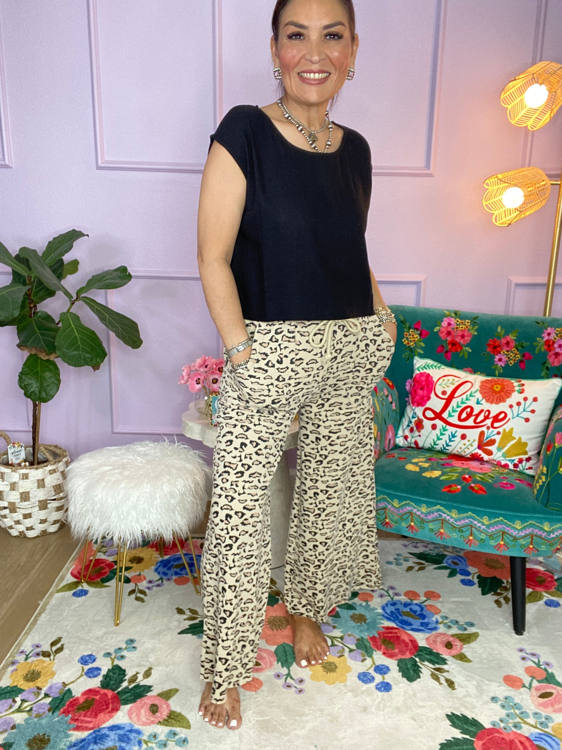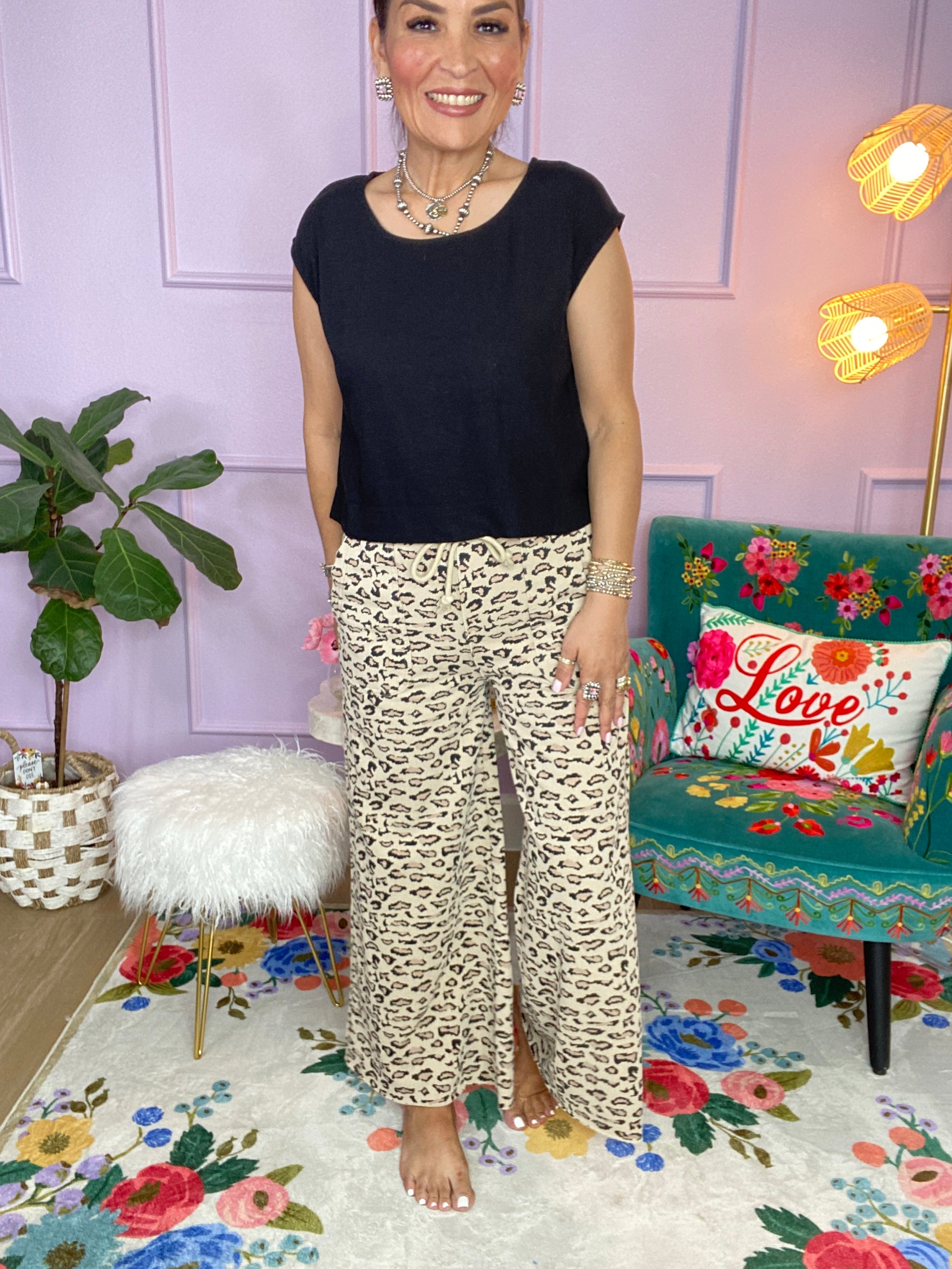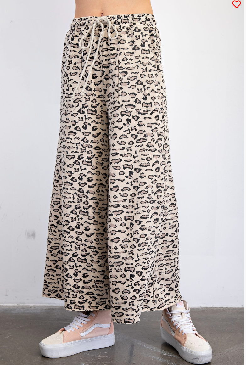 ANIMAL PRINT MINERAL WASHED TERRY KNIT PANTS