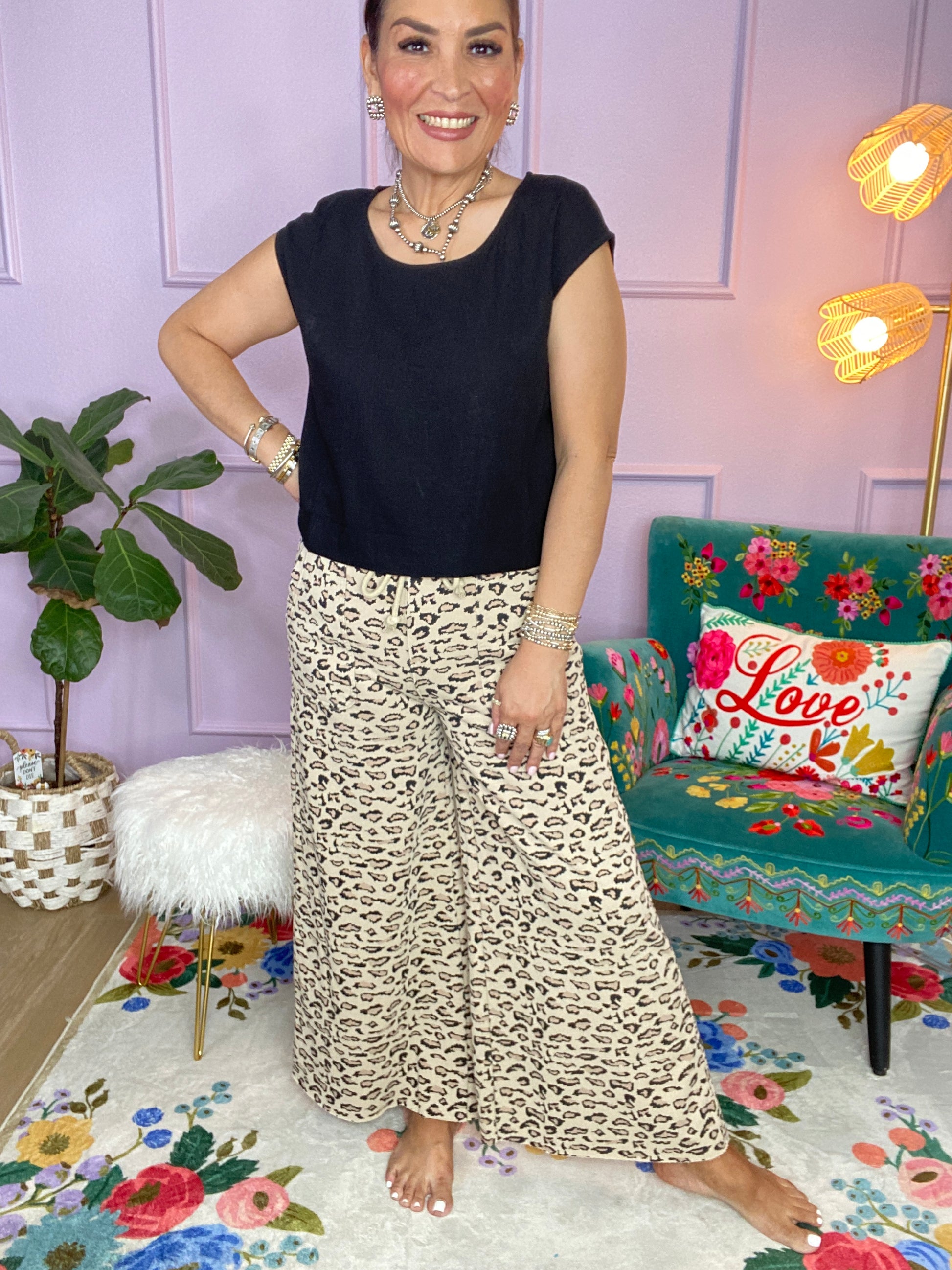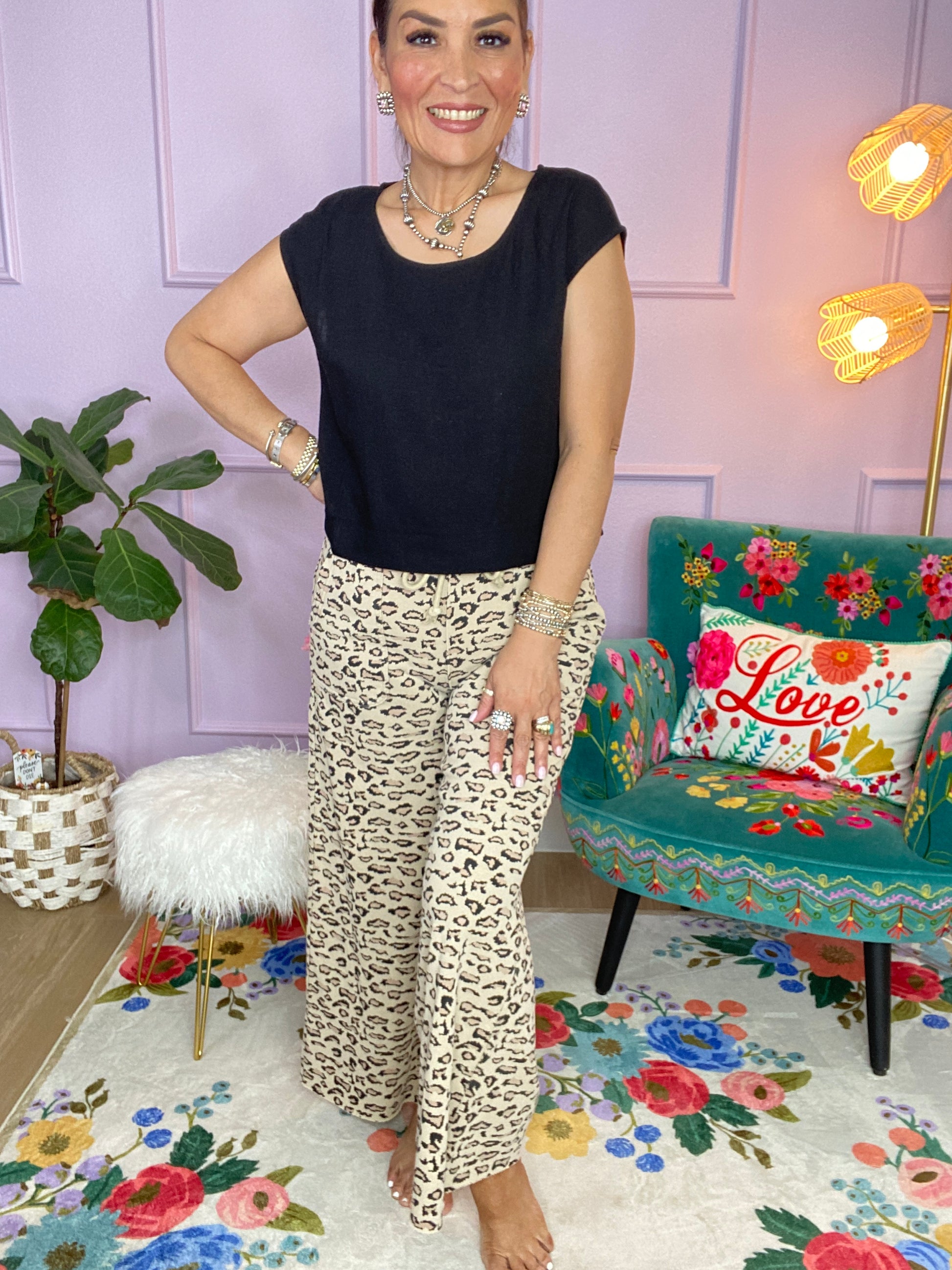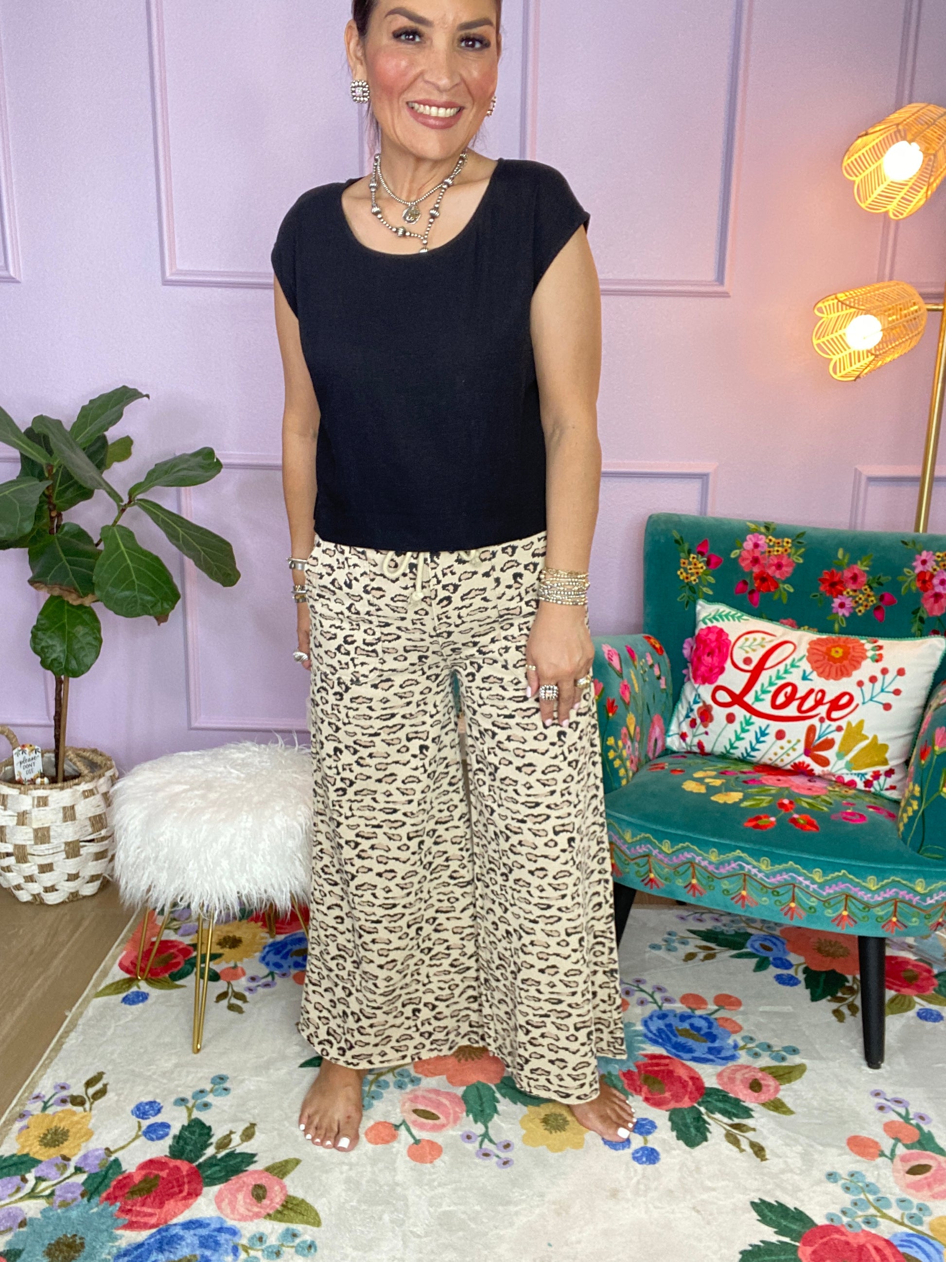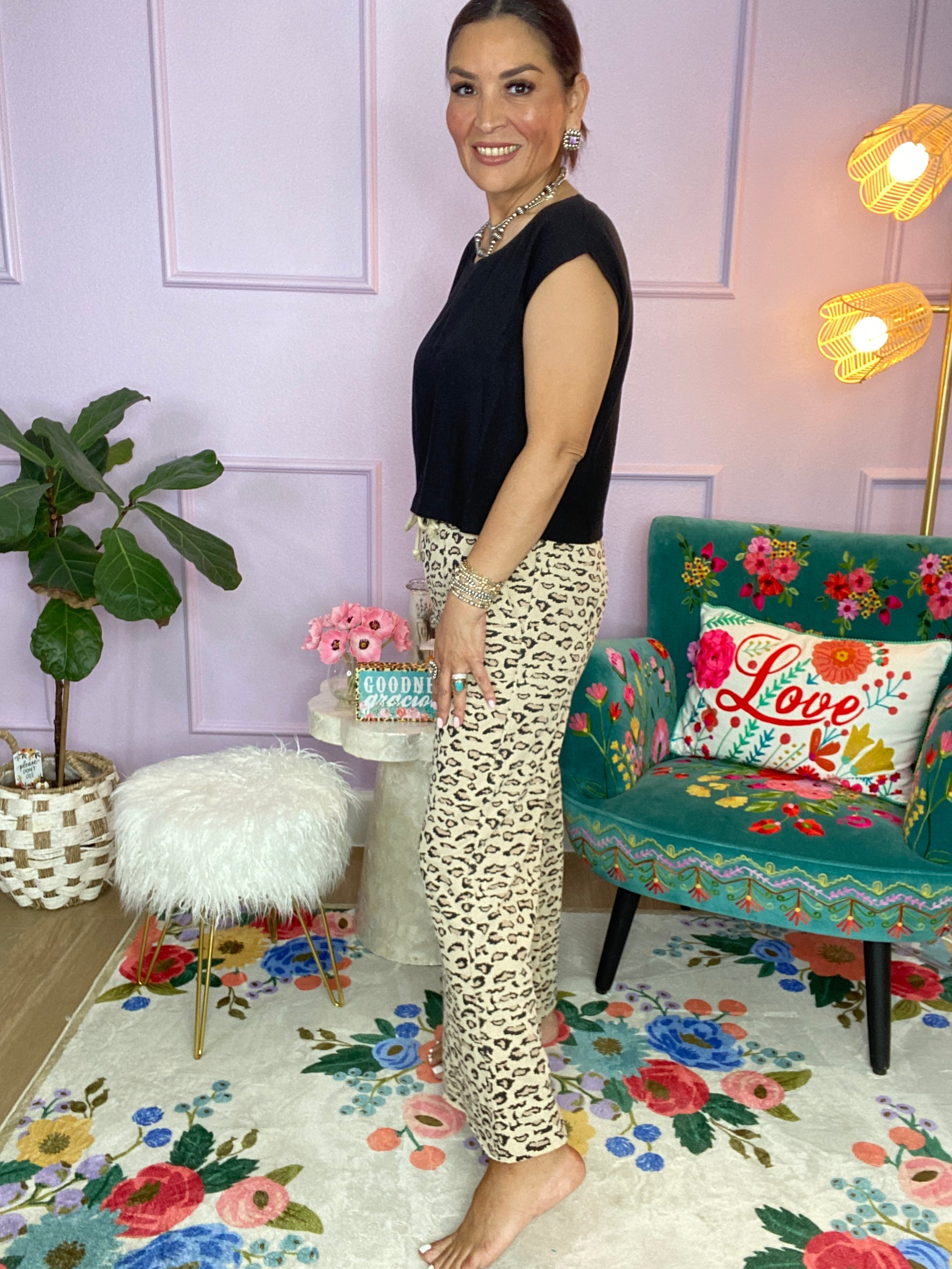 ANIMAL PRINT MINERAL WASHED TERRY KNIT PANTS