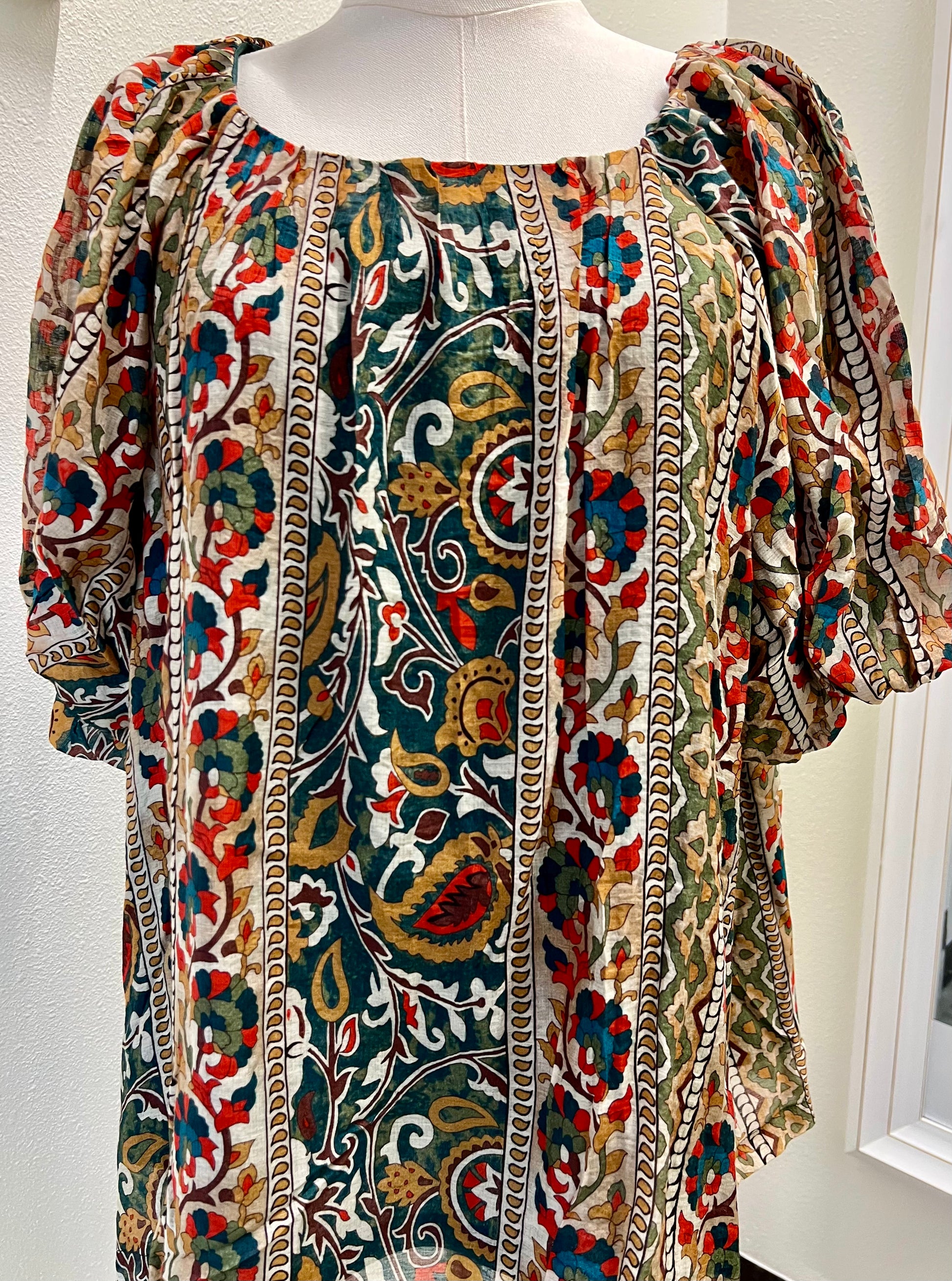 Boho Floral Stripe Puff Sleeve Blouse - Curvy