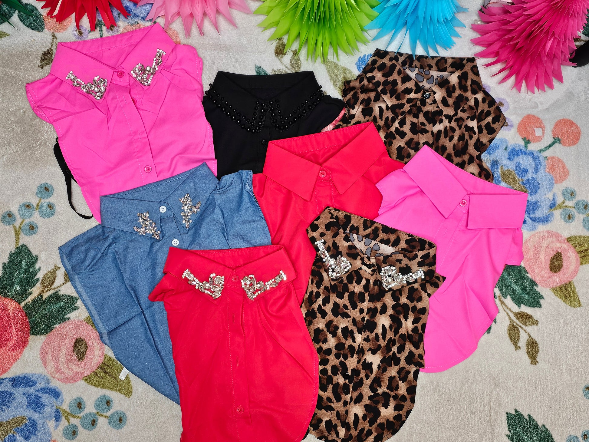 - Variety of jeweled, pearl, plaid, and chambray collar options