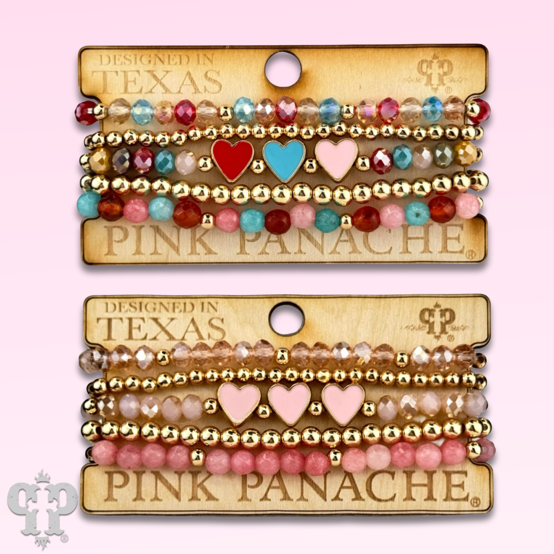This adorable bracelet features fun enamel hearts and sparkling faceted beads that stretch for a perfect fit. Add a touch of charm to any outfit with this must-have accessory. Show off your style and make a statement with this whimsical bracelet!