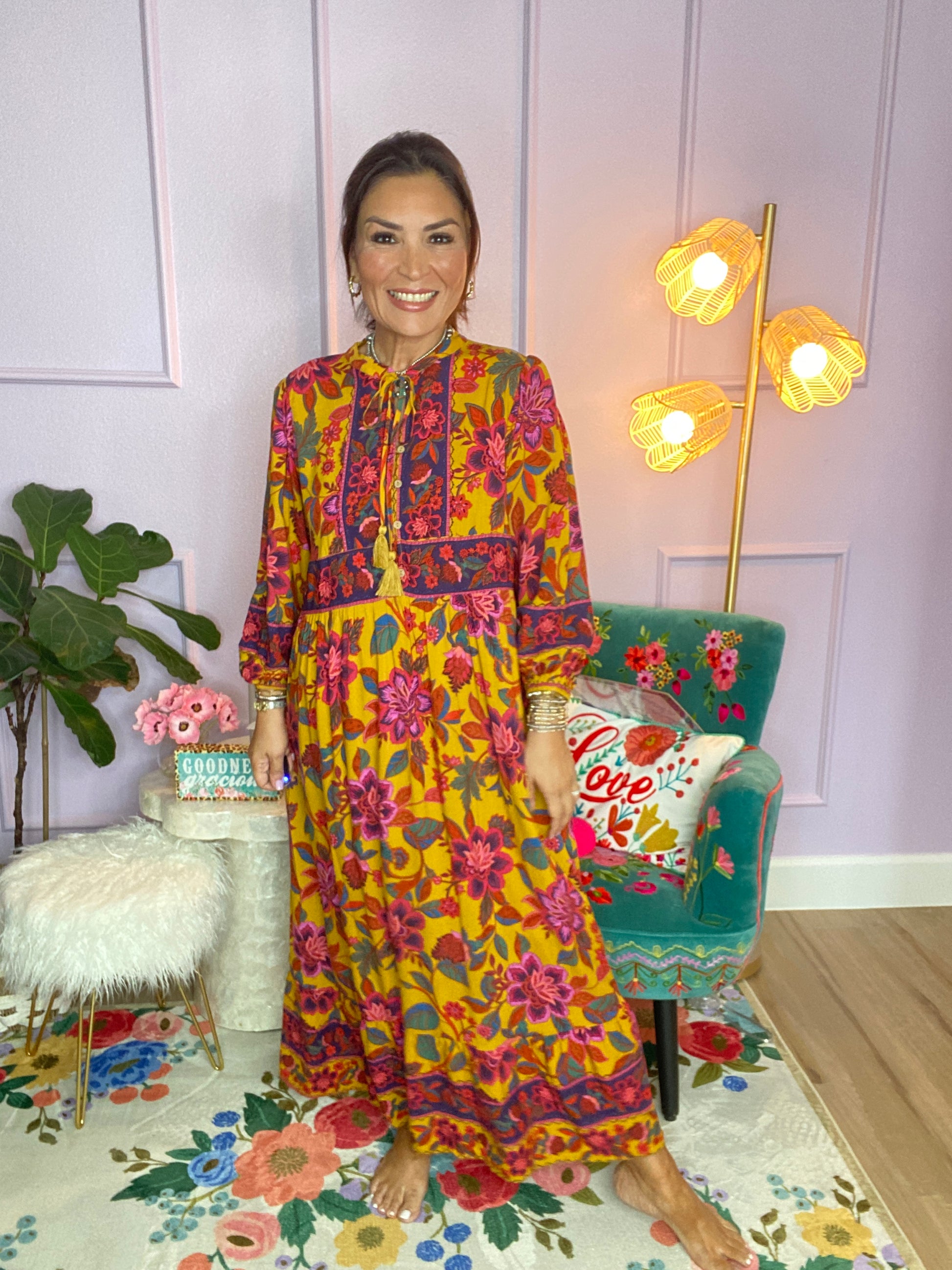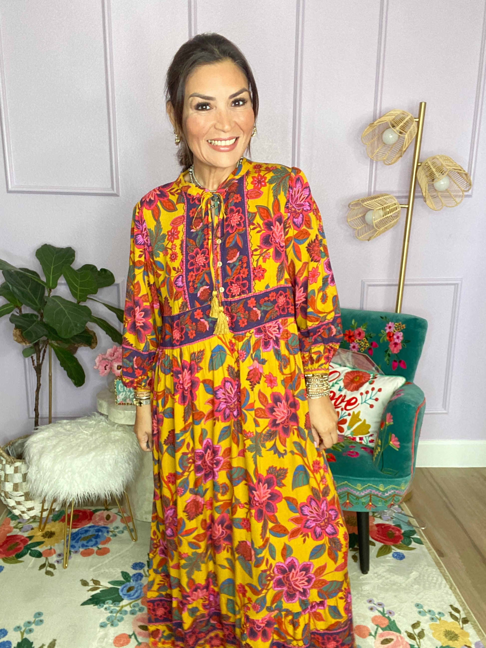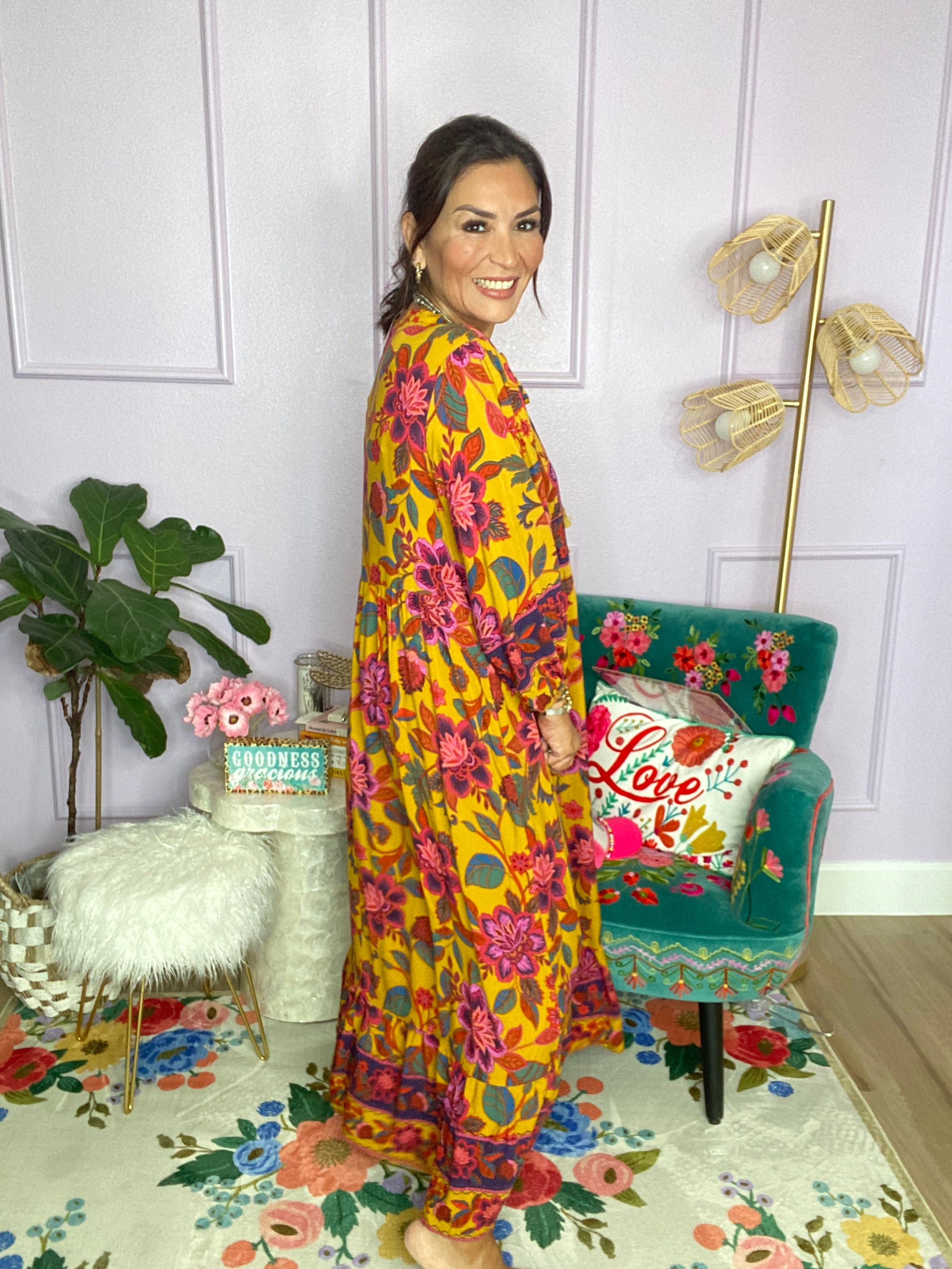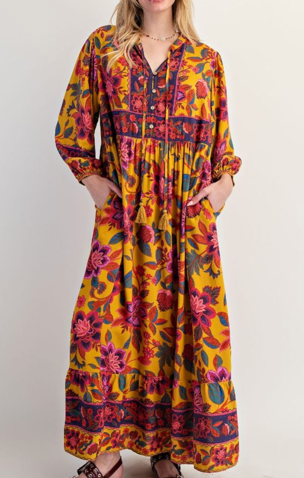 FLORAL PRINTED RAYON CHALLIS MAXI DRESS