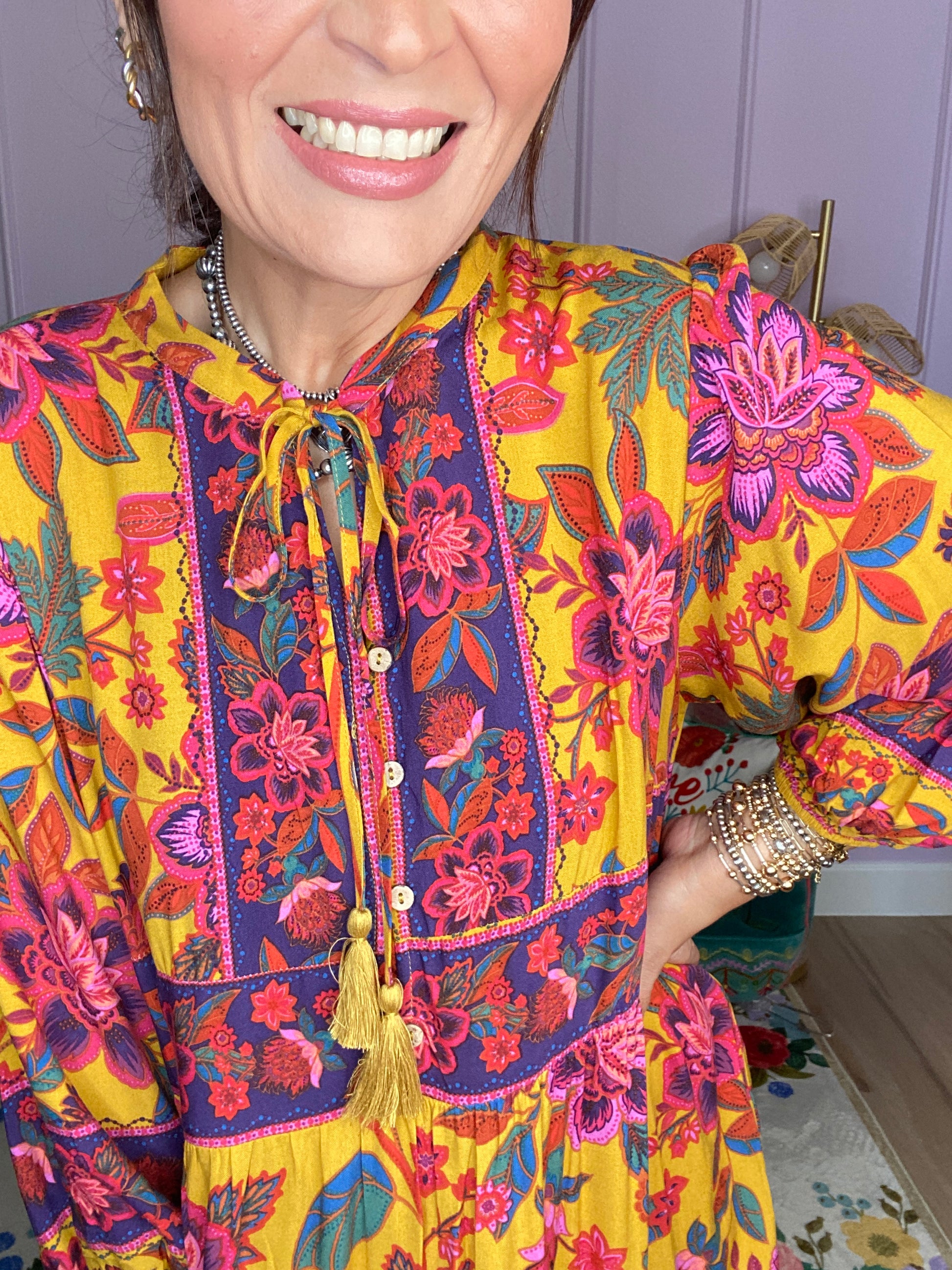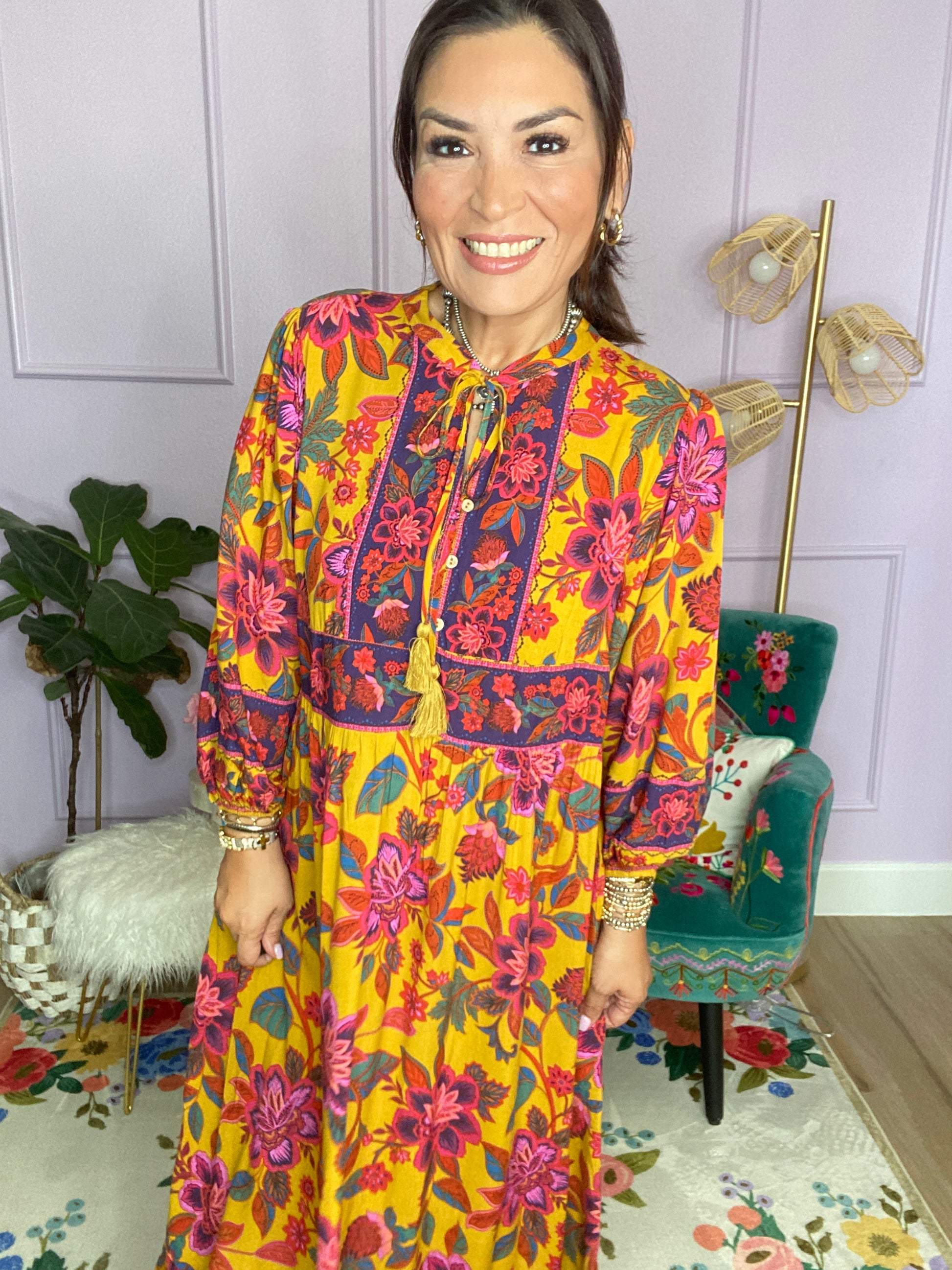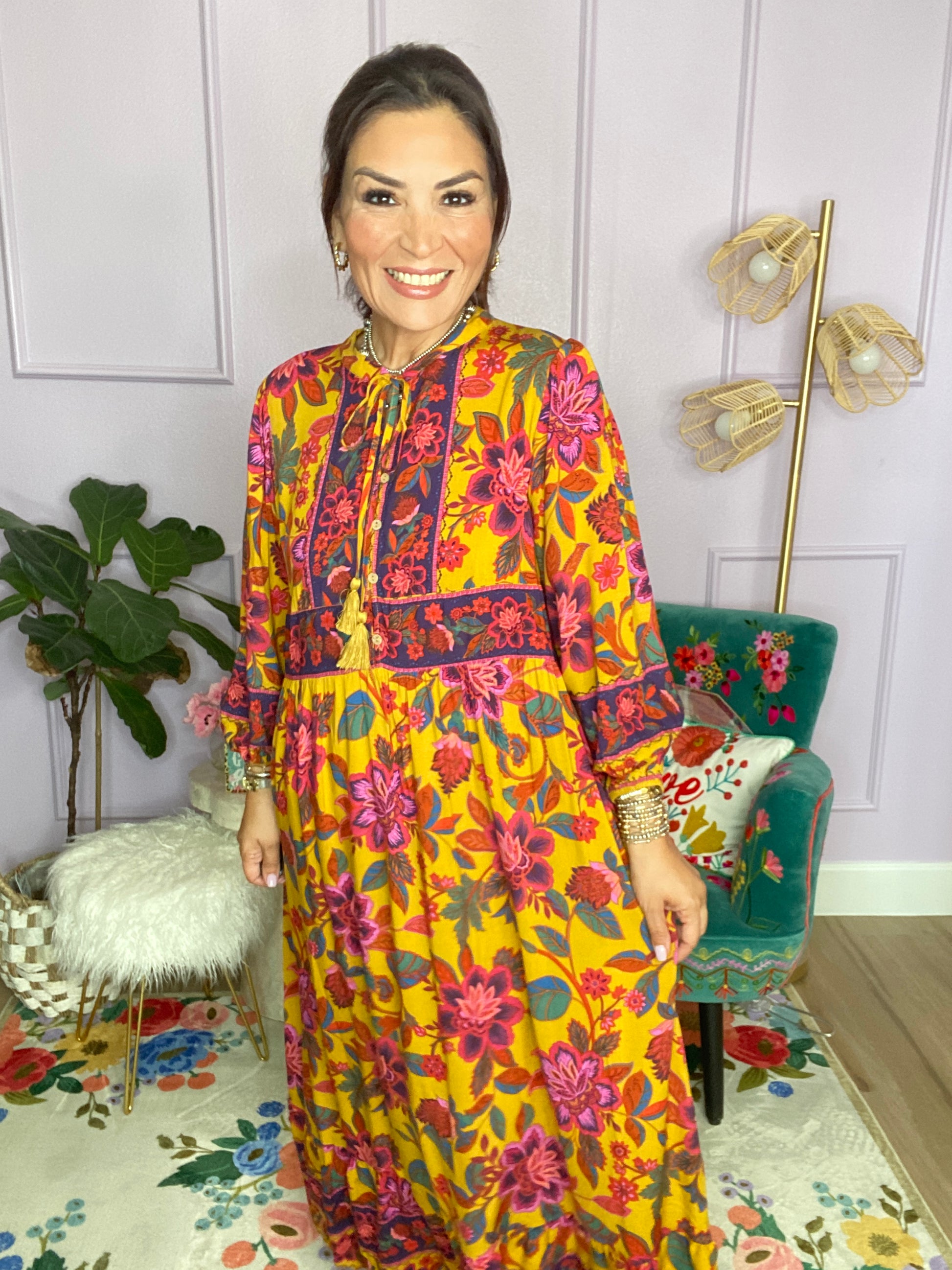 FLORAL PRINTED RAYON CHALLIS MAXI DRESS