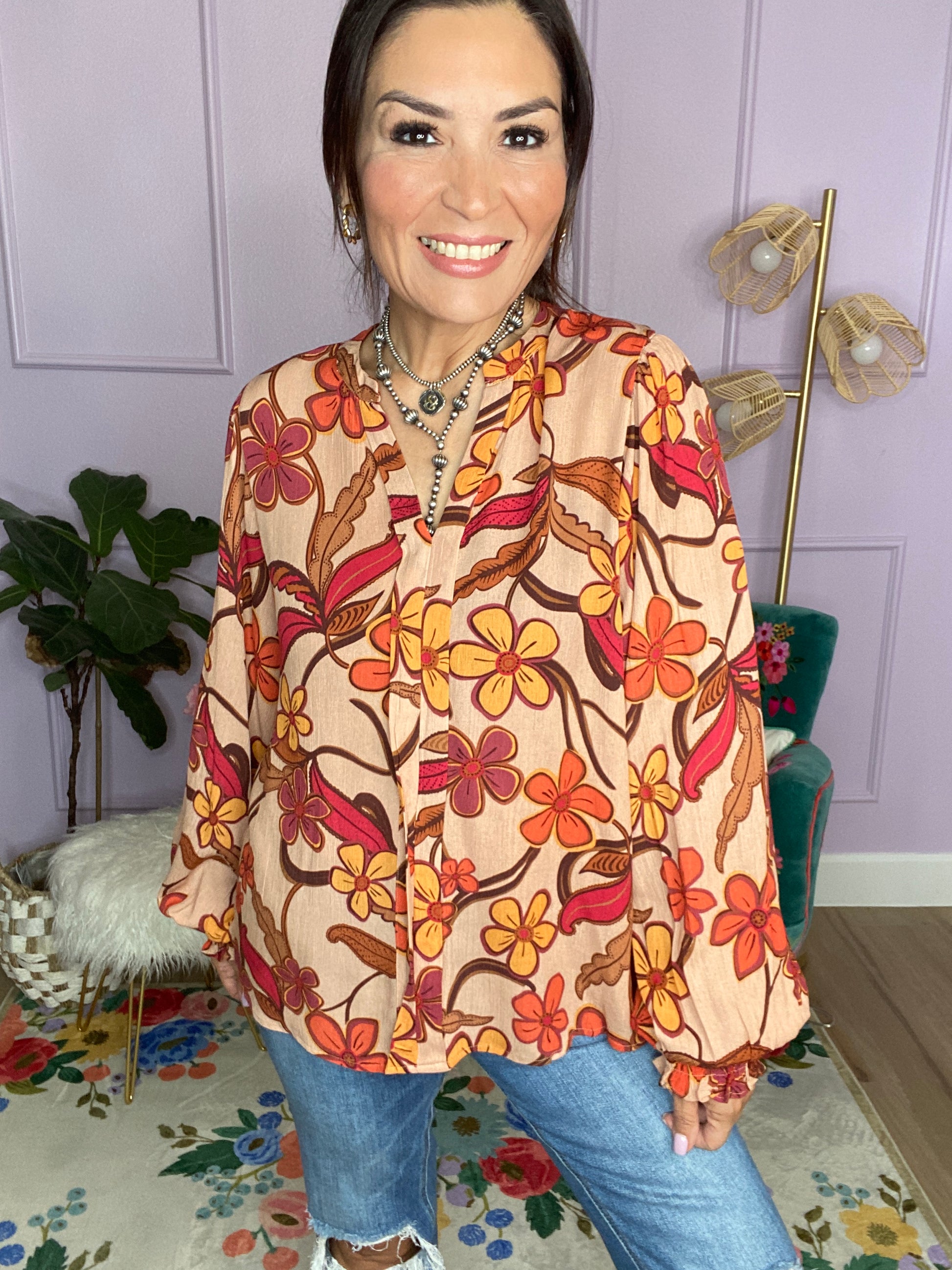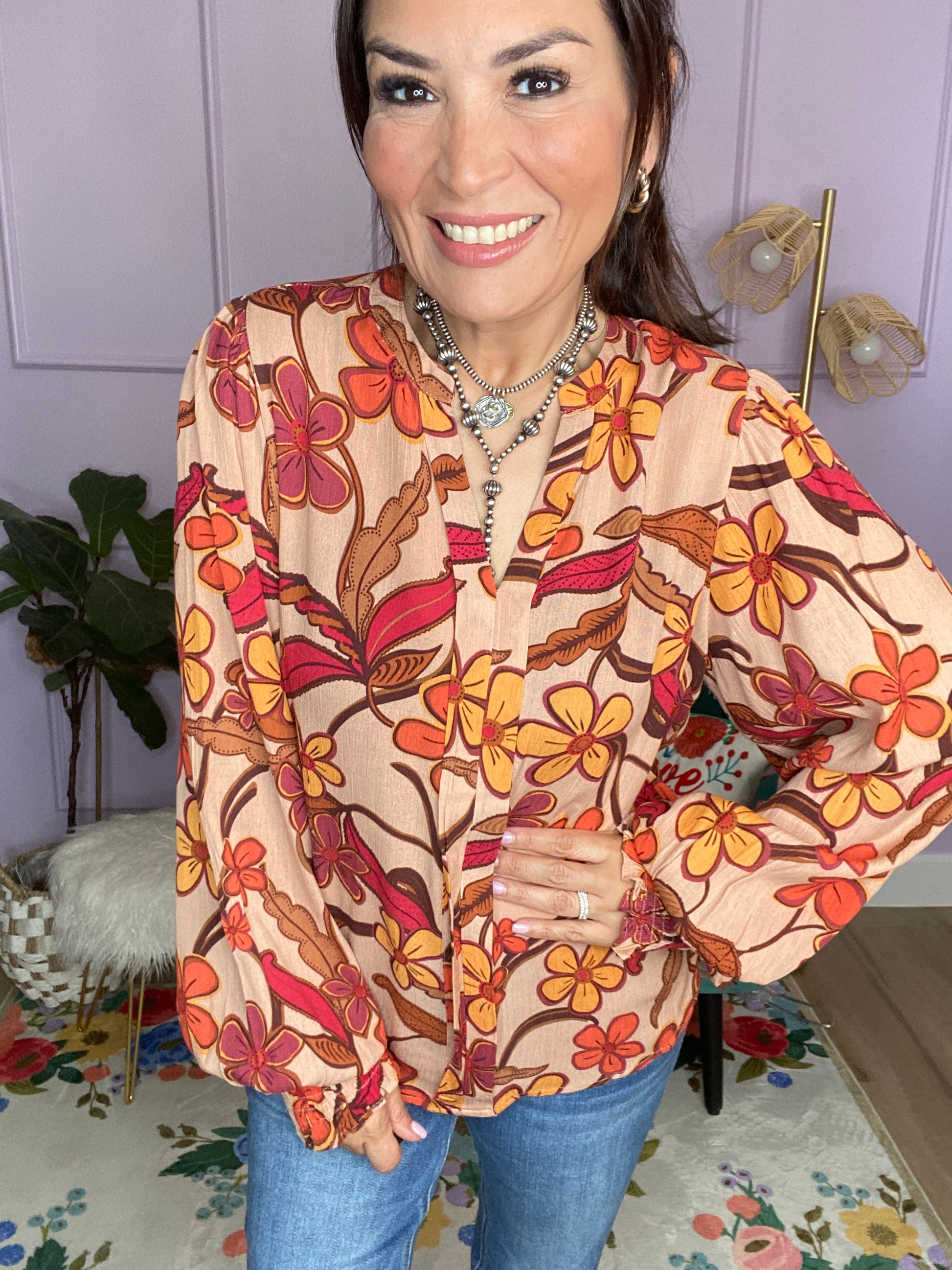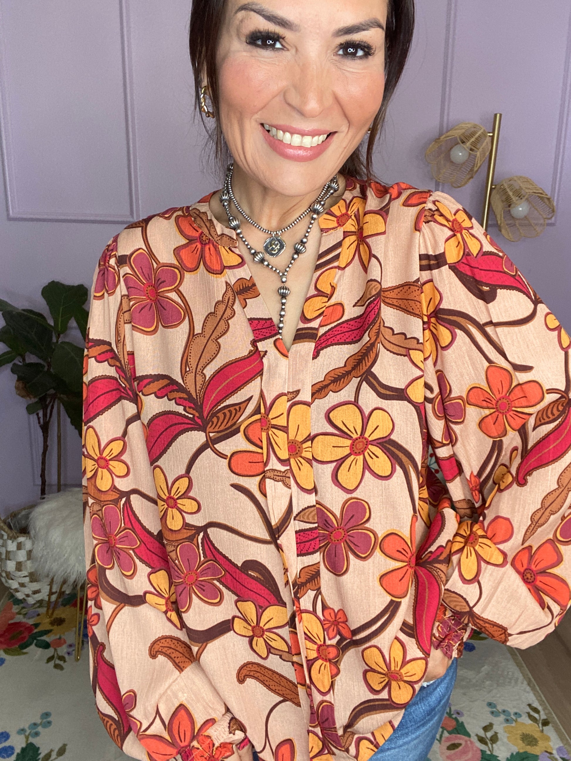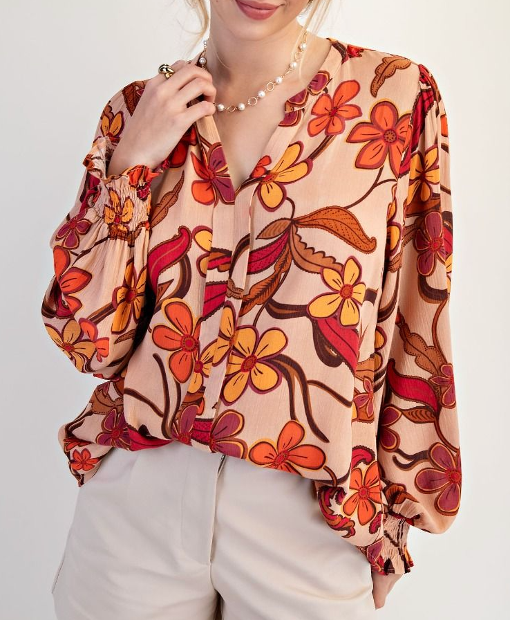 FLORAL PRINTED RAYON GAUZE WOVEN TOP