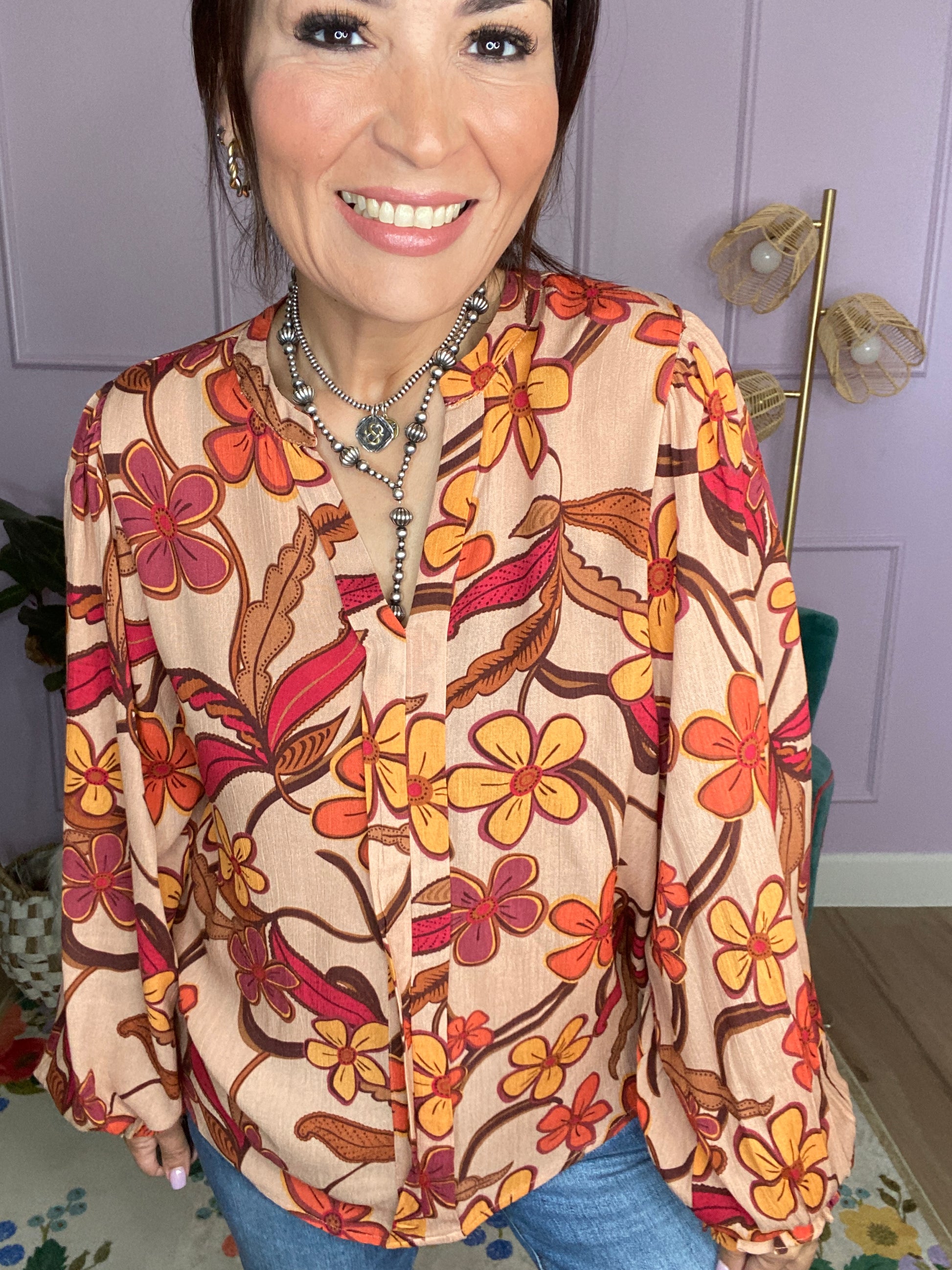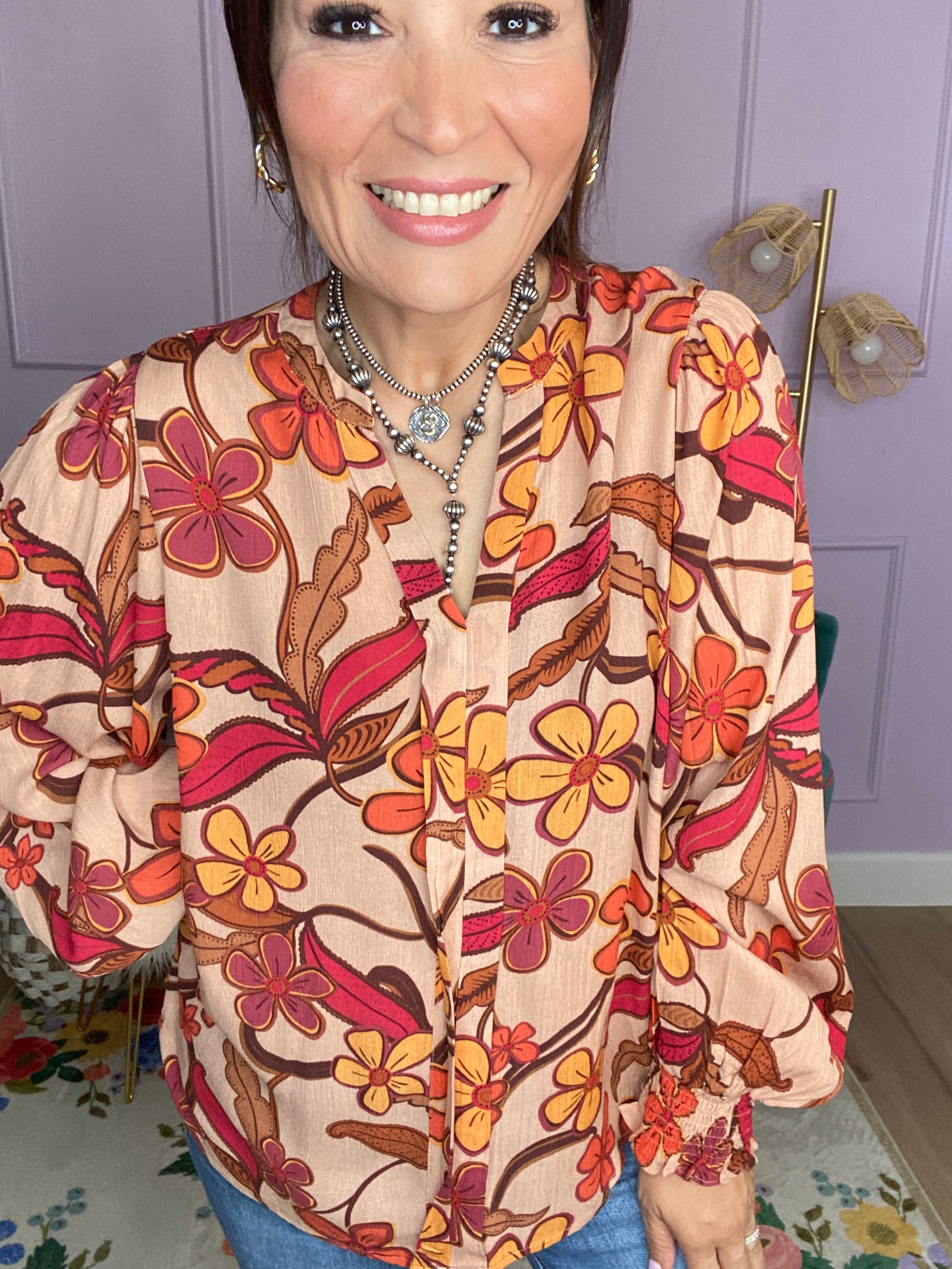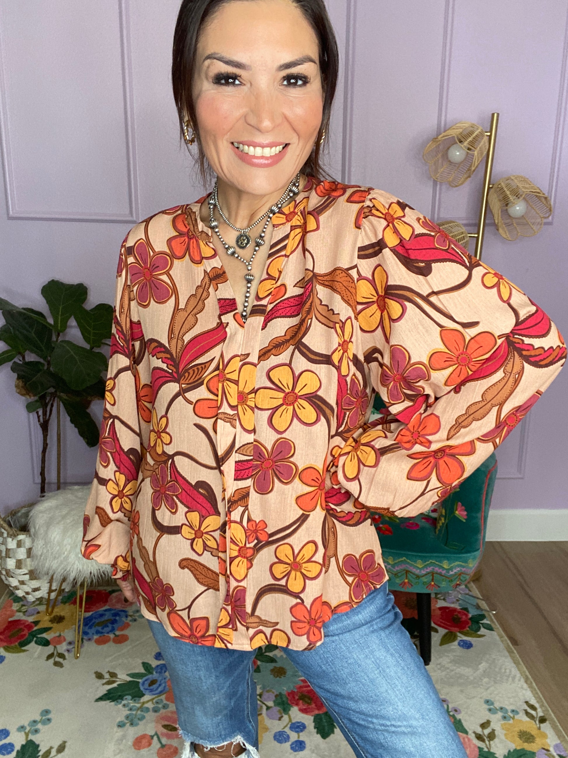 FLORAL PRINTED RAYON GAUZE WOVEN TOP
