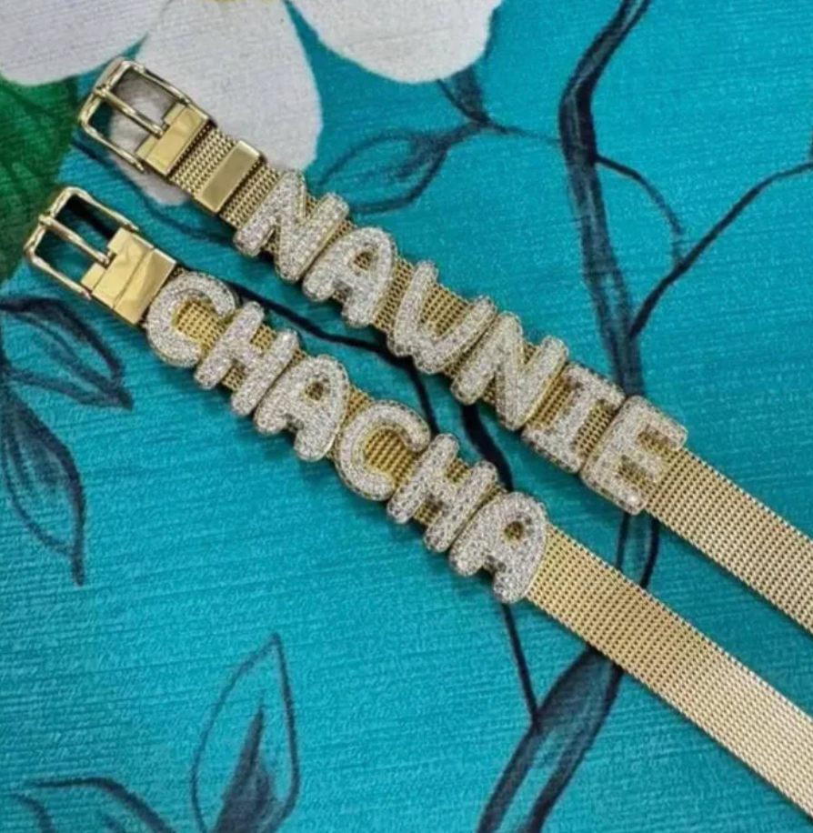 GOLD Bubble CZ Initial Slider Charm for Strap Bracelet (A-Z)