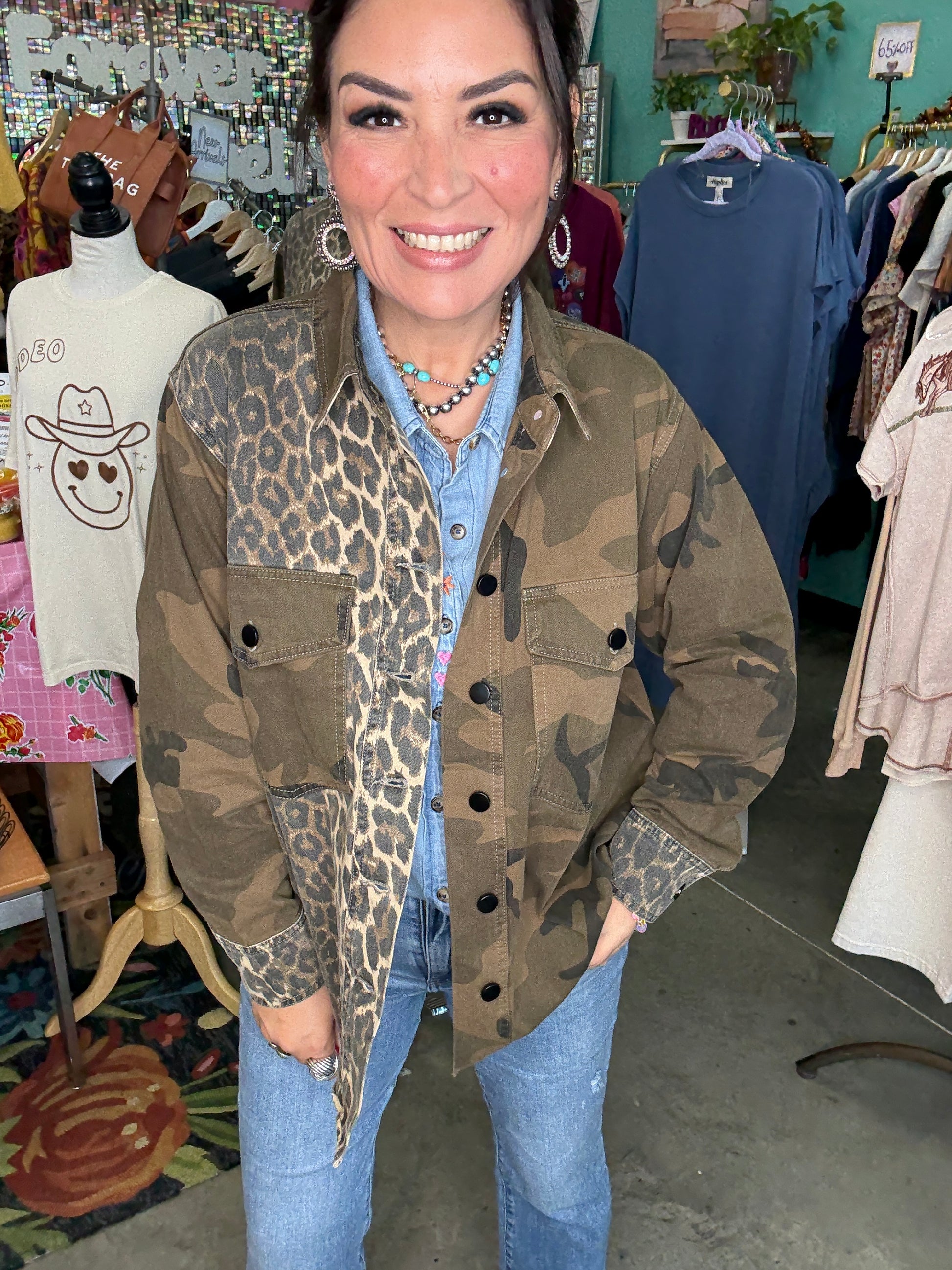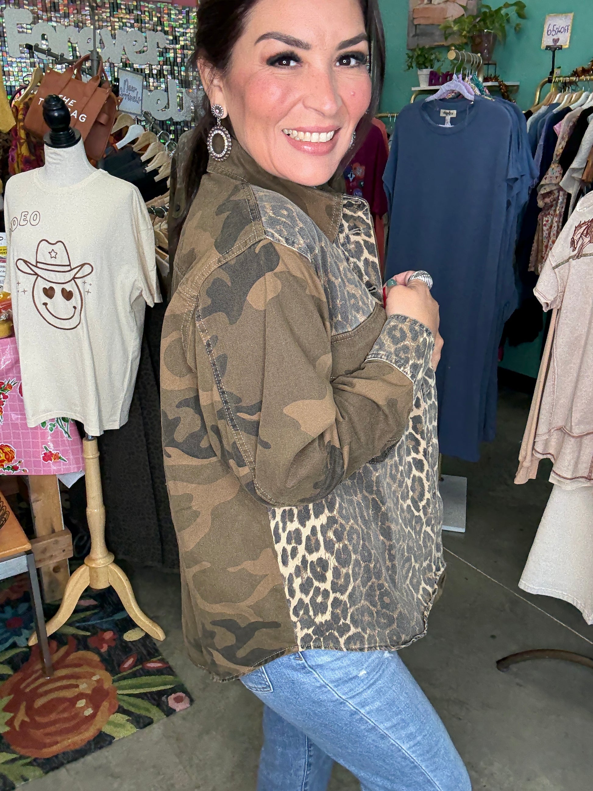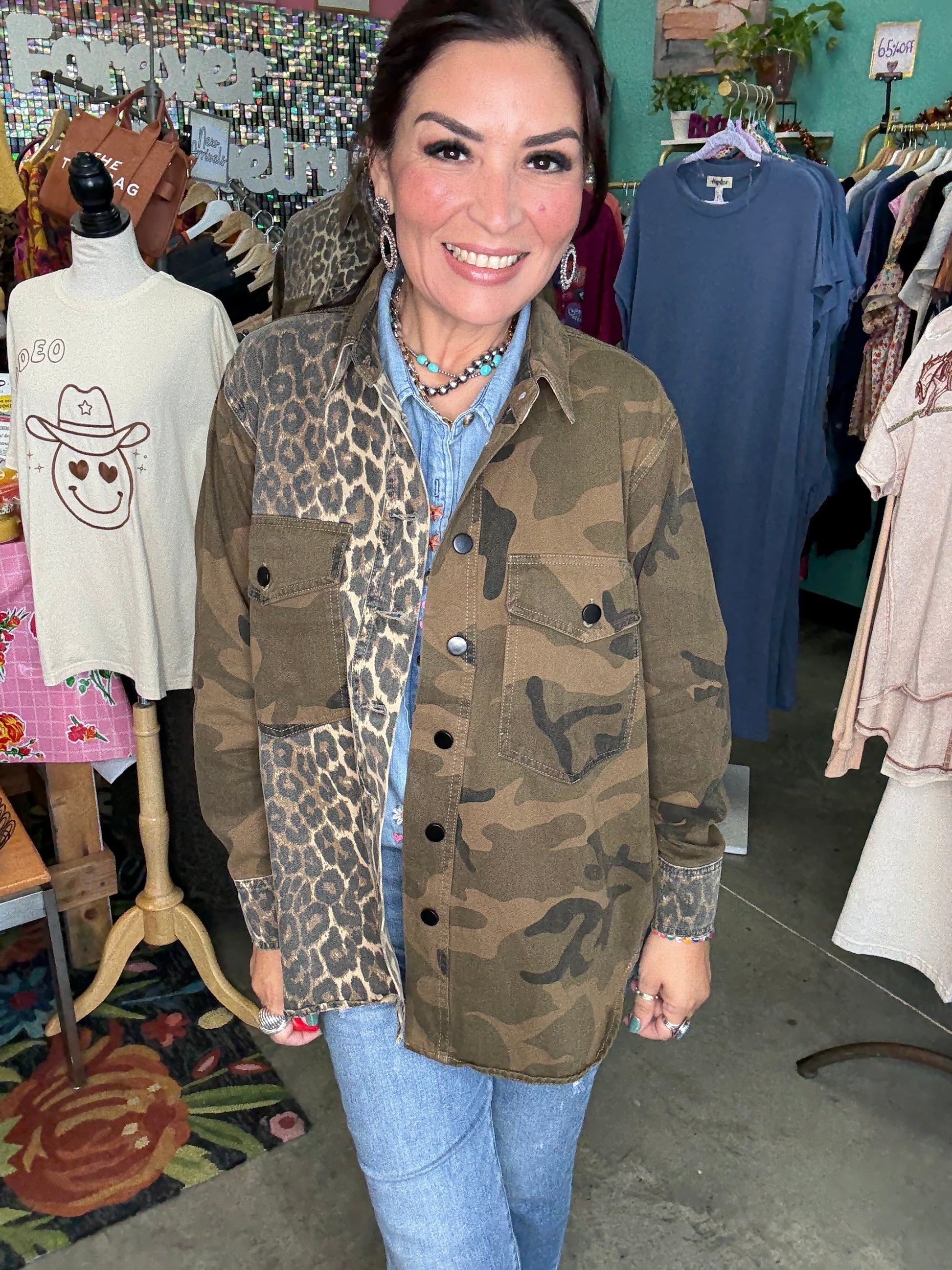 MIX MEDIA CAMO LEOPARD SNAP JACKET
