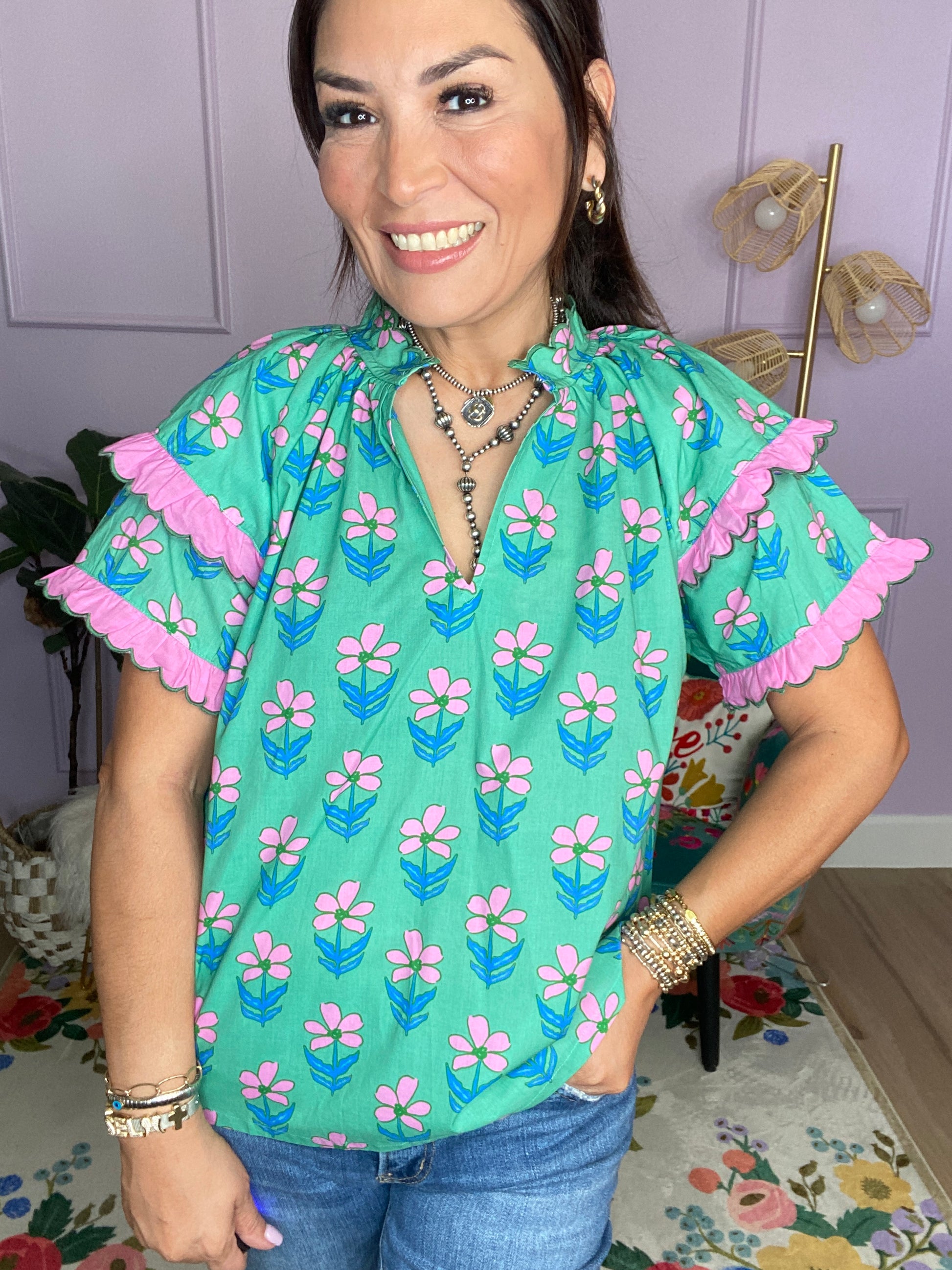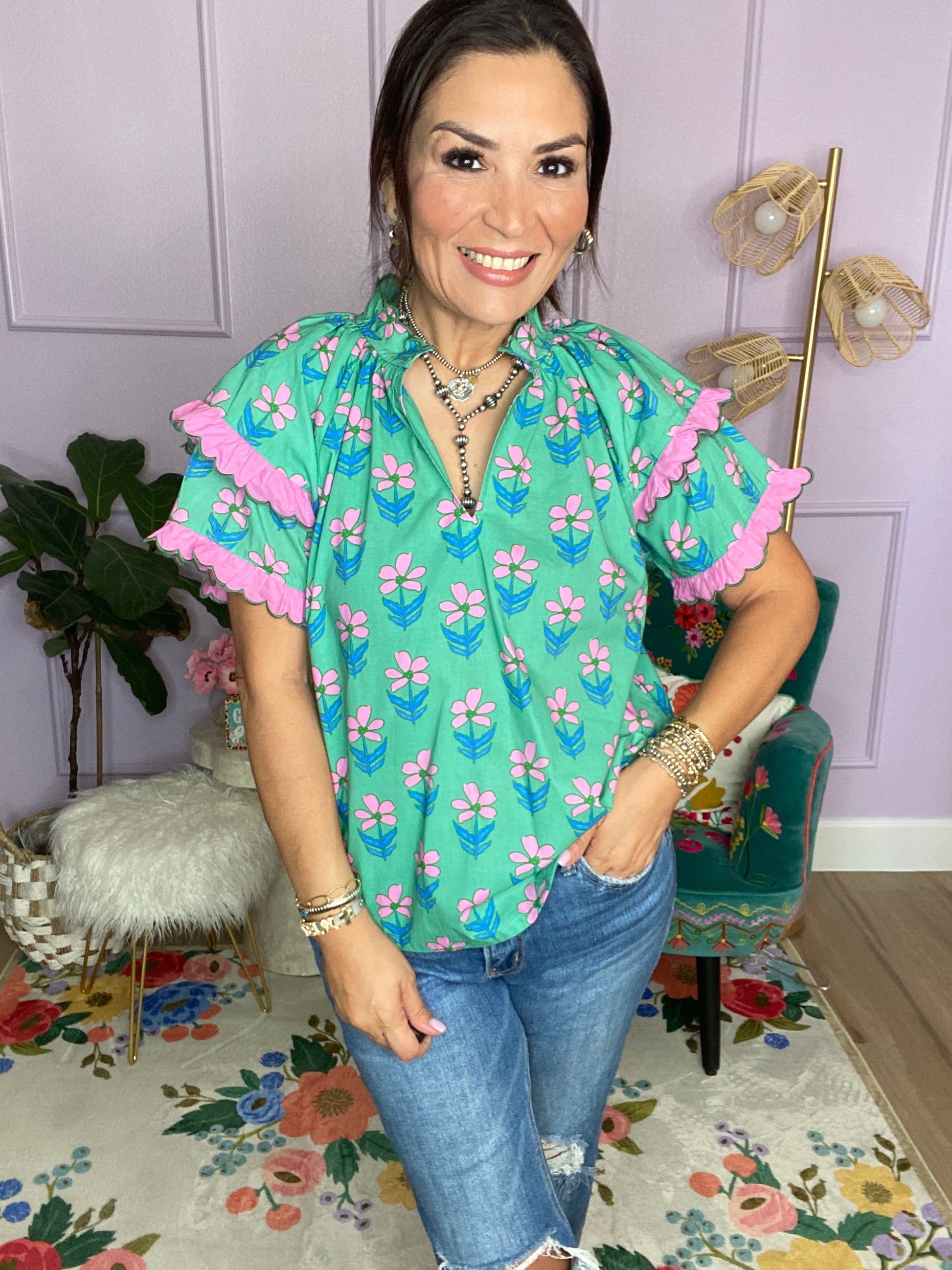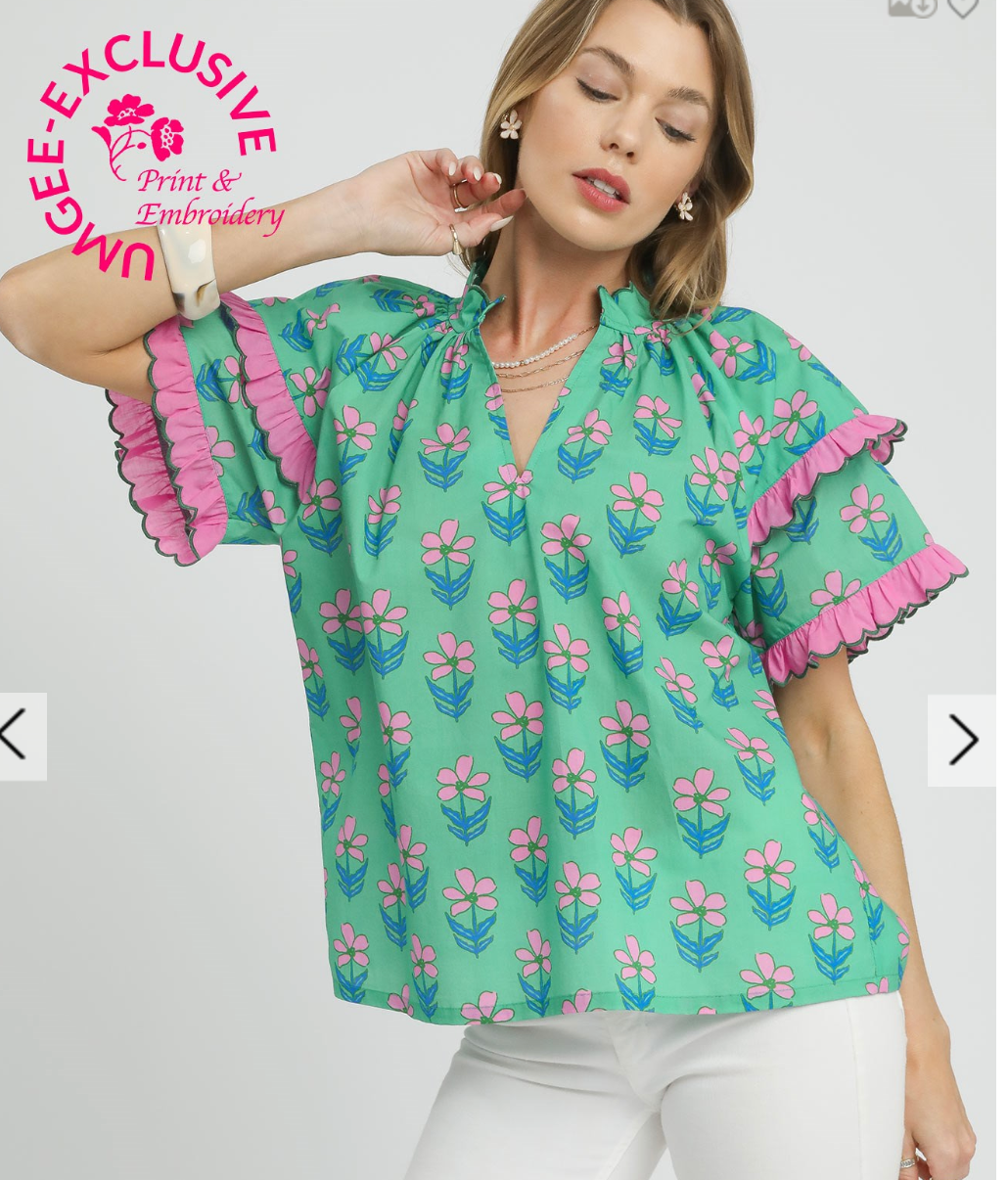 Mix Ruffle Sleeve Floral Blouse