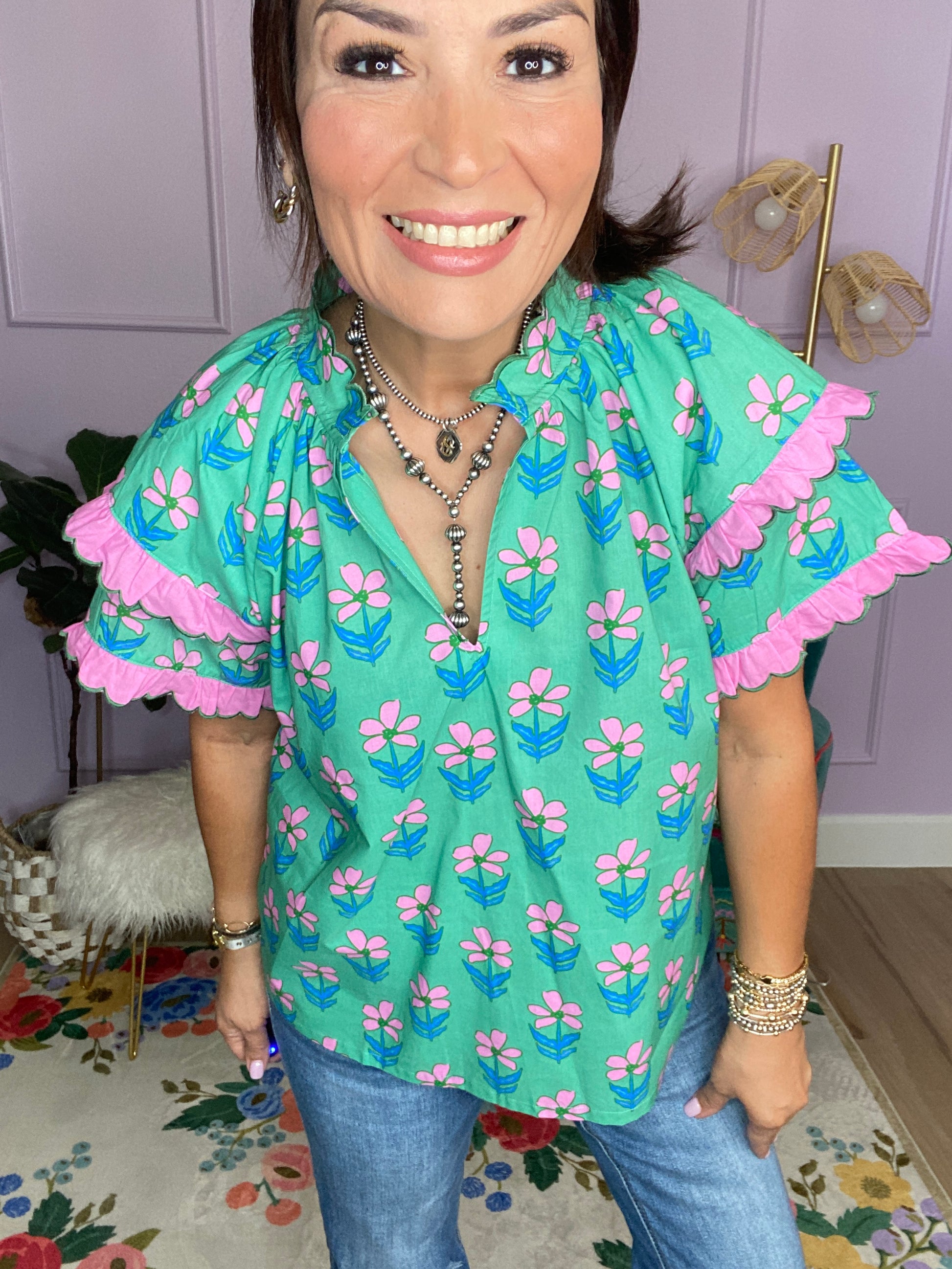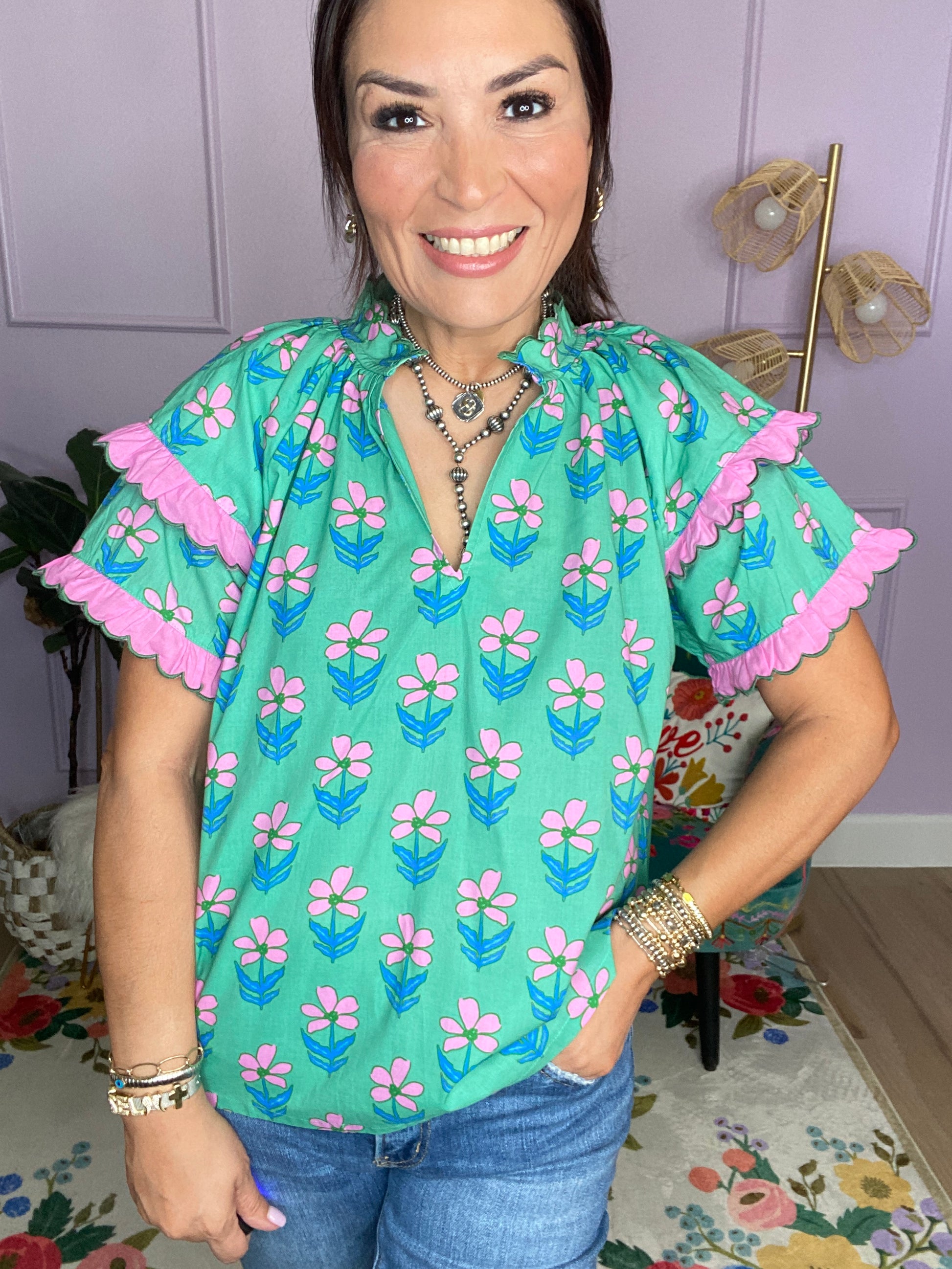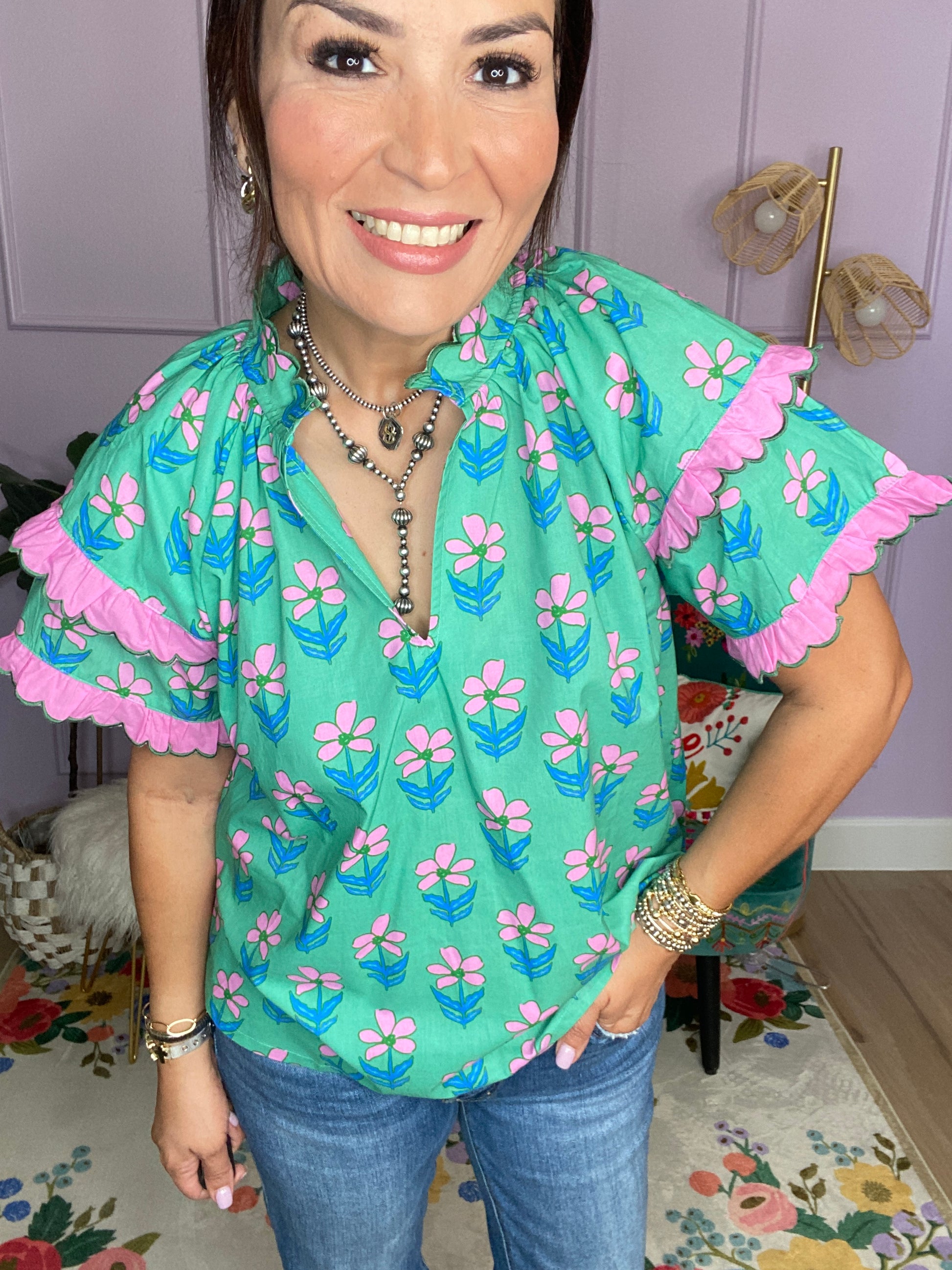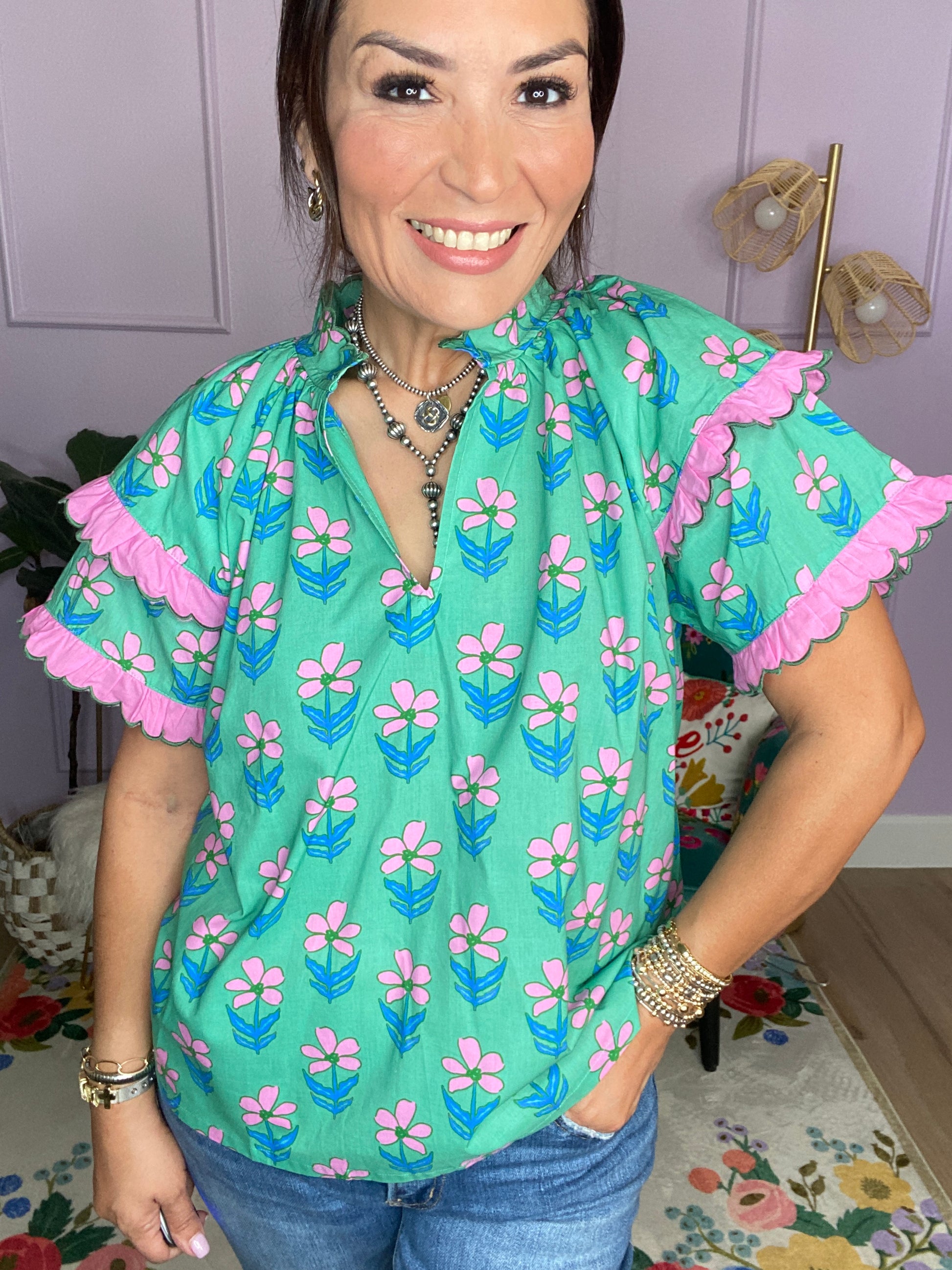Mix Ruffle Sleeve Floral Blouse