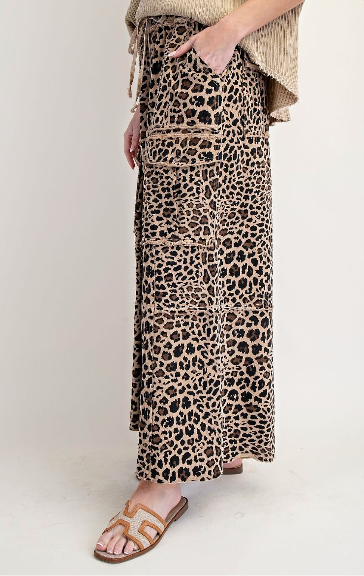 MOCHA ANIMAL PRINTED TERRY KNIT MINERAL WASHED CARGO PANTS