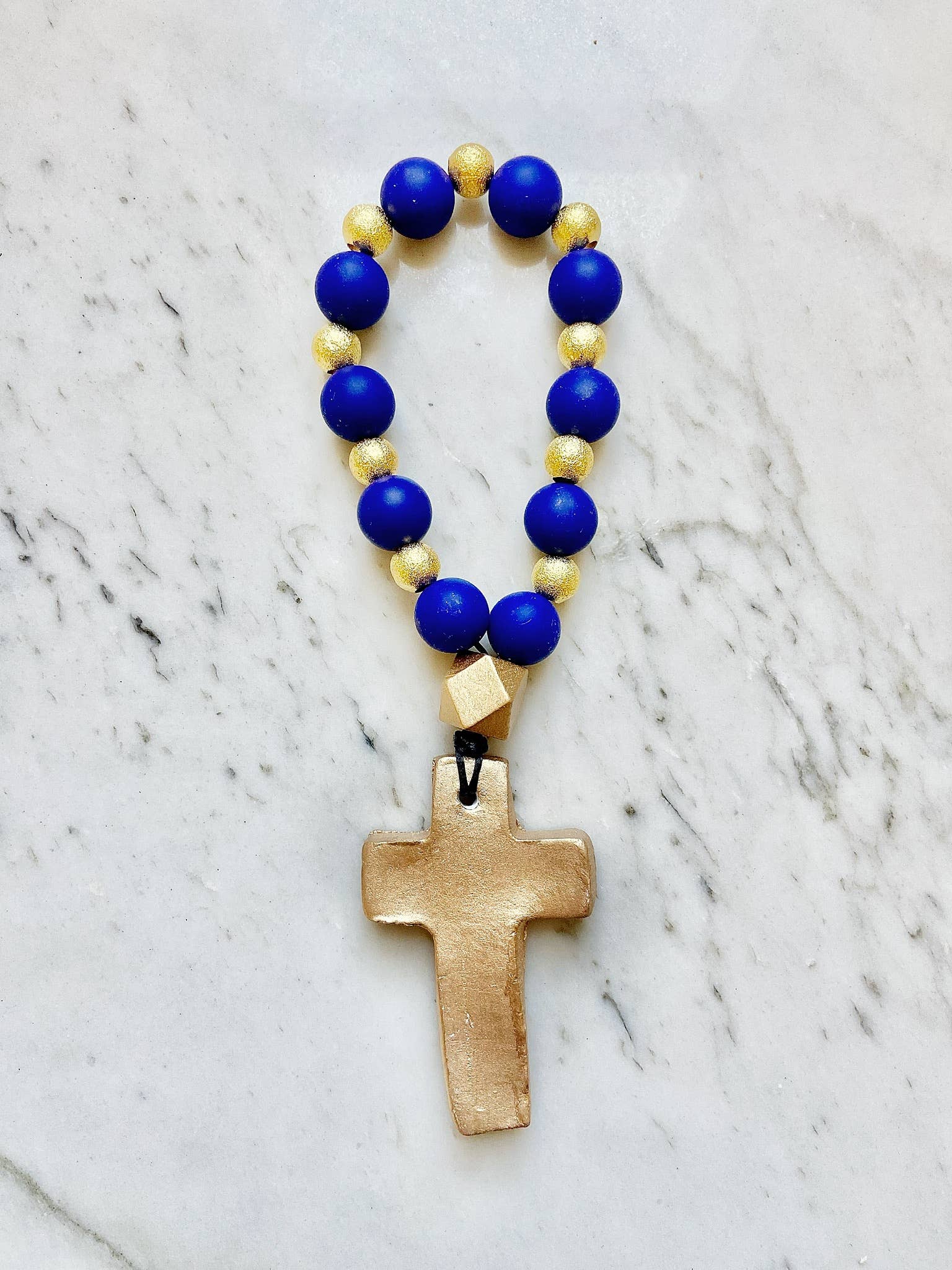Beautiful prayer beads with 10 15mm silicone beads separated by shimmering gold beads. Handmade gold crosses adorn prayer beads. Perfect gift for weddings, baptisms, housewarming gift, and teacher presents! The 10 beads allow you to prayer a decade of the rosary on the prayer beads if you would like! Color options are endless! See the 2nd picture to see our color options.