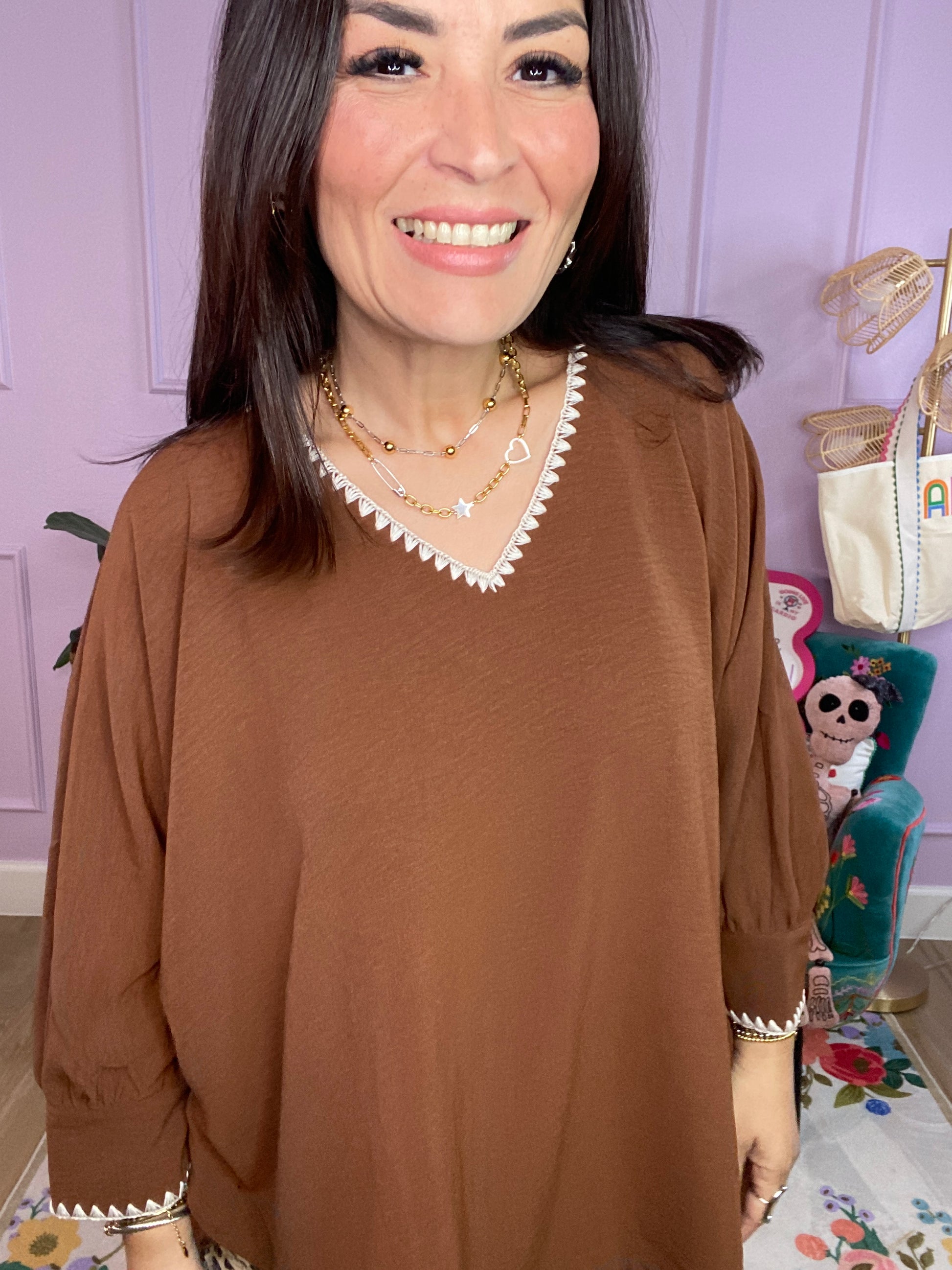 Elevate your everyday look with this oversized top featuring drop-shoulder batwing sleeves and a wide V-neckline. Designed with subtle stitch details, buttoned wrist cuffs, and a flattering round hem, this piece blends comfort with effortless style. Perfect for pairing with skinny jeans or leggings for a balanced, chic silhouette.