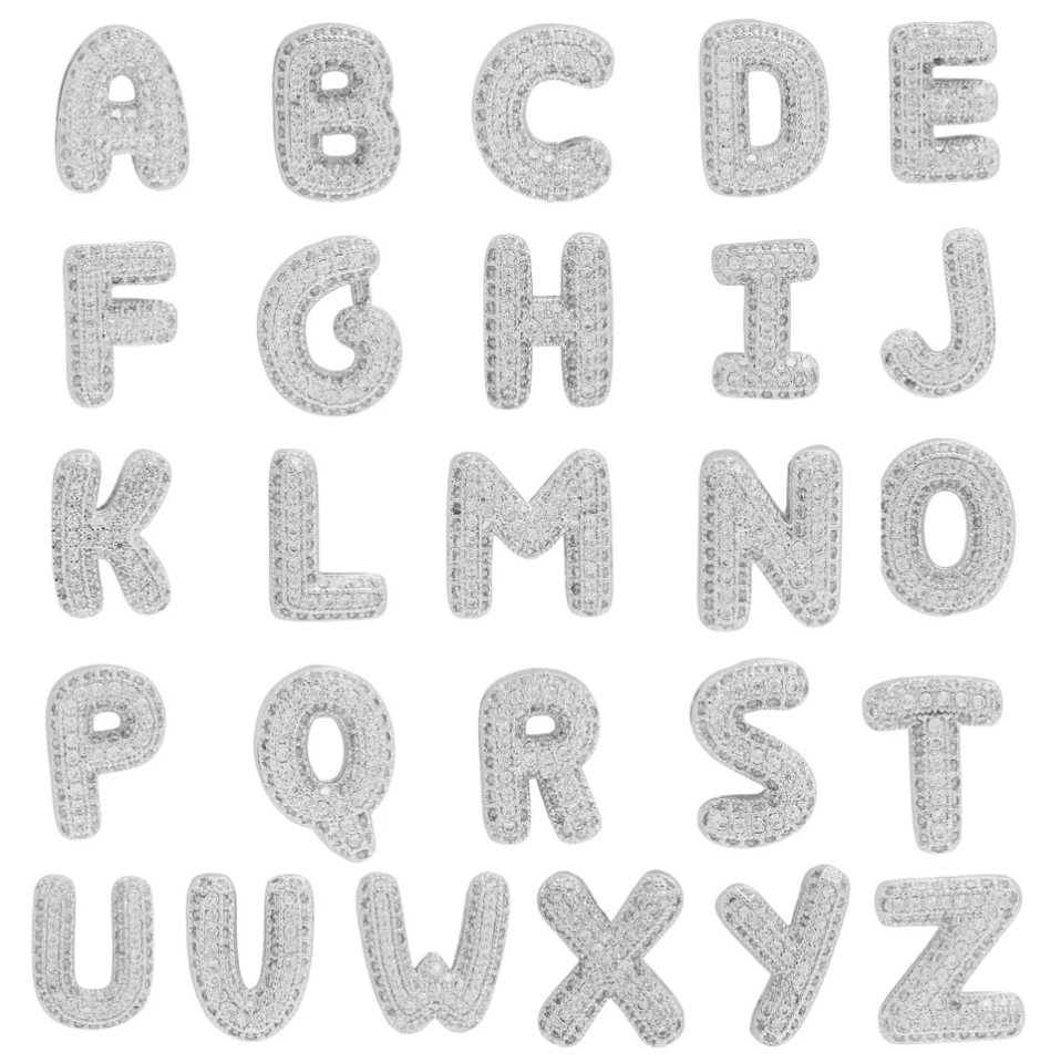 SILVER Bubble CZ Initial Slider Charm for Strap Bracelet (A-Z)