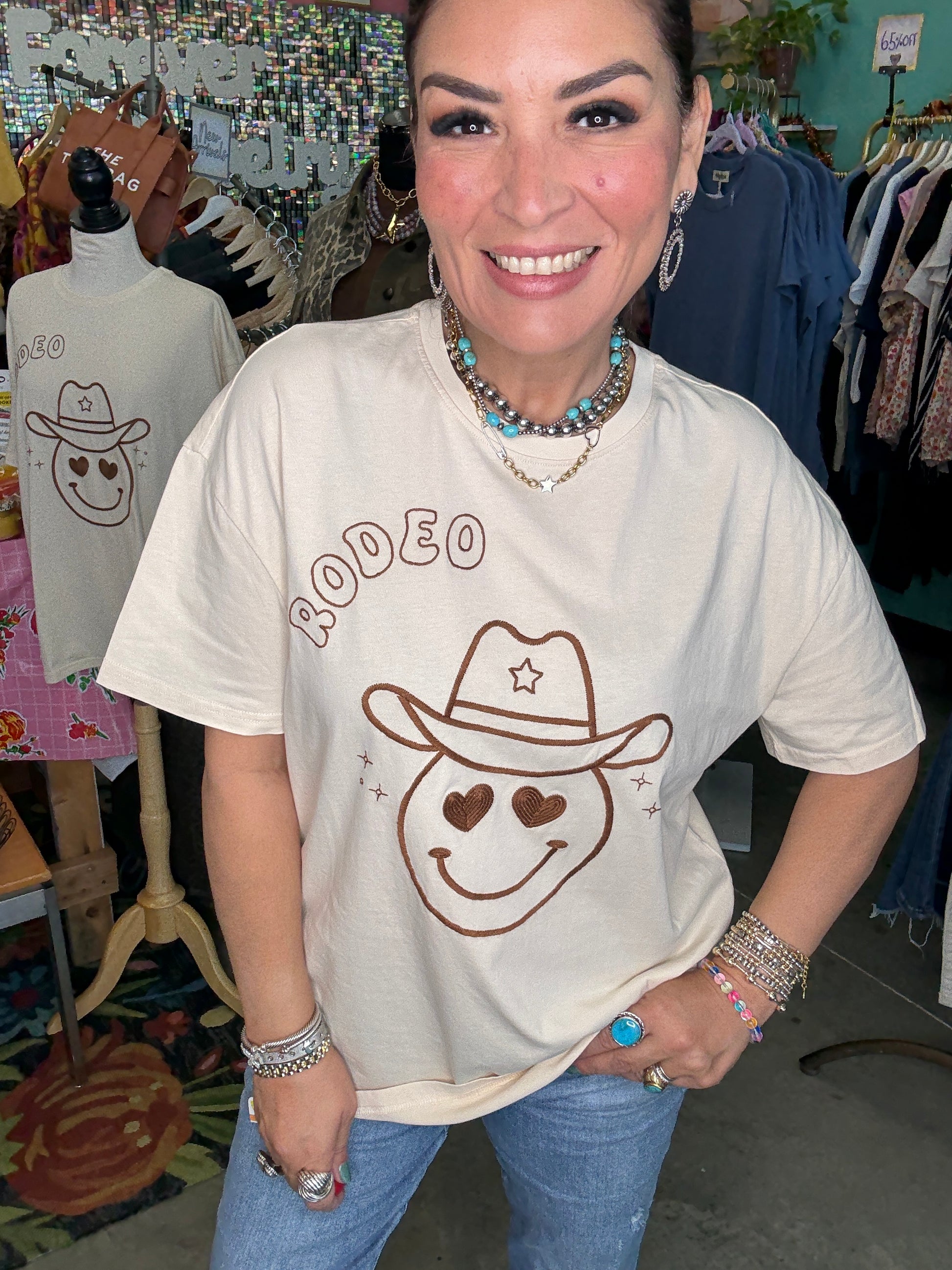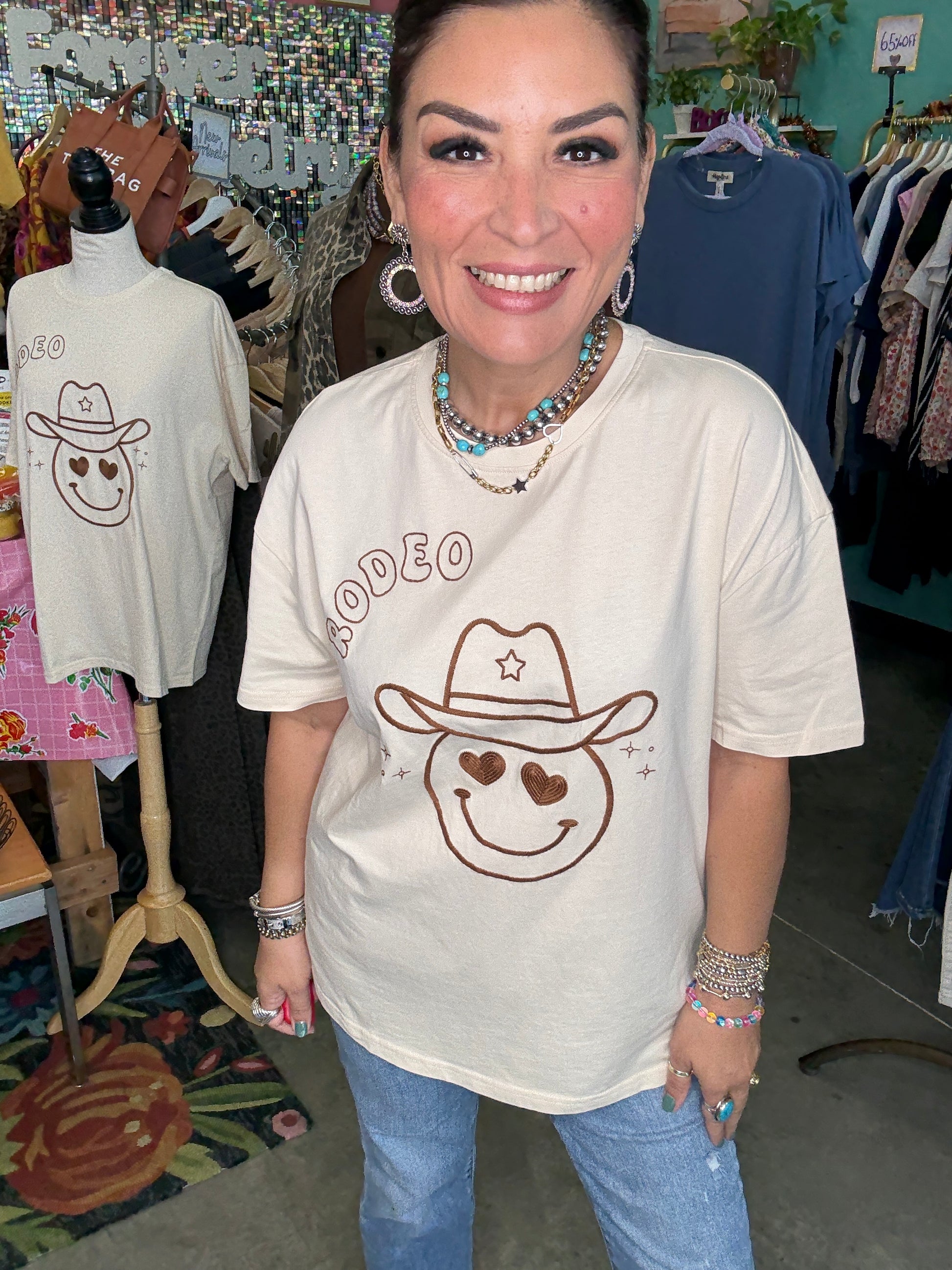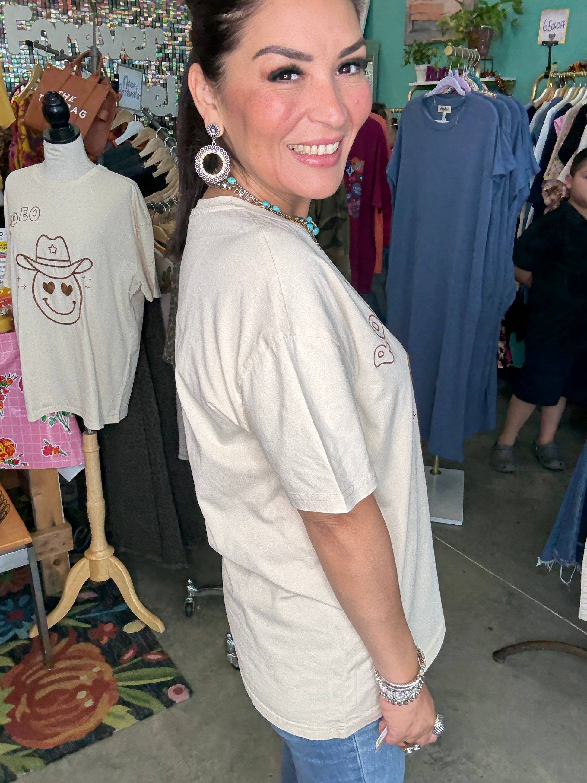 GARMENT WASHED EMBROIDERED SMILEY GRAPHIC T-SHIRT