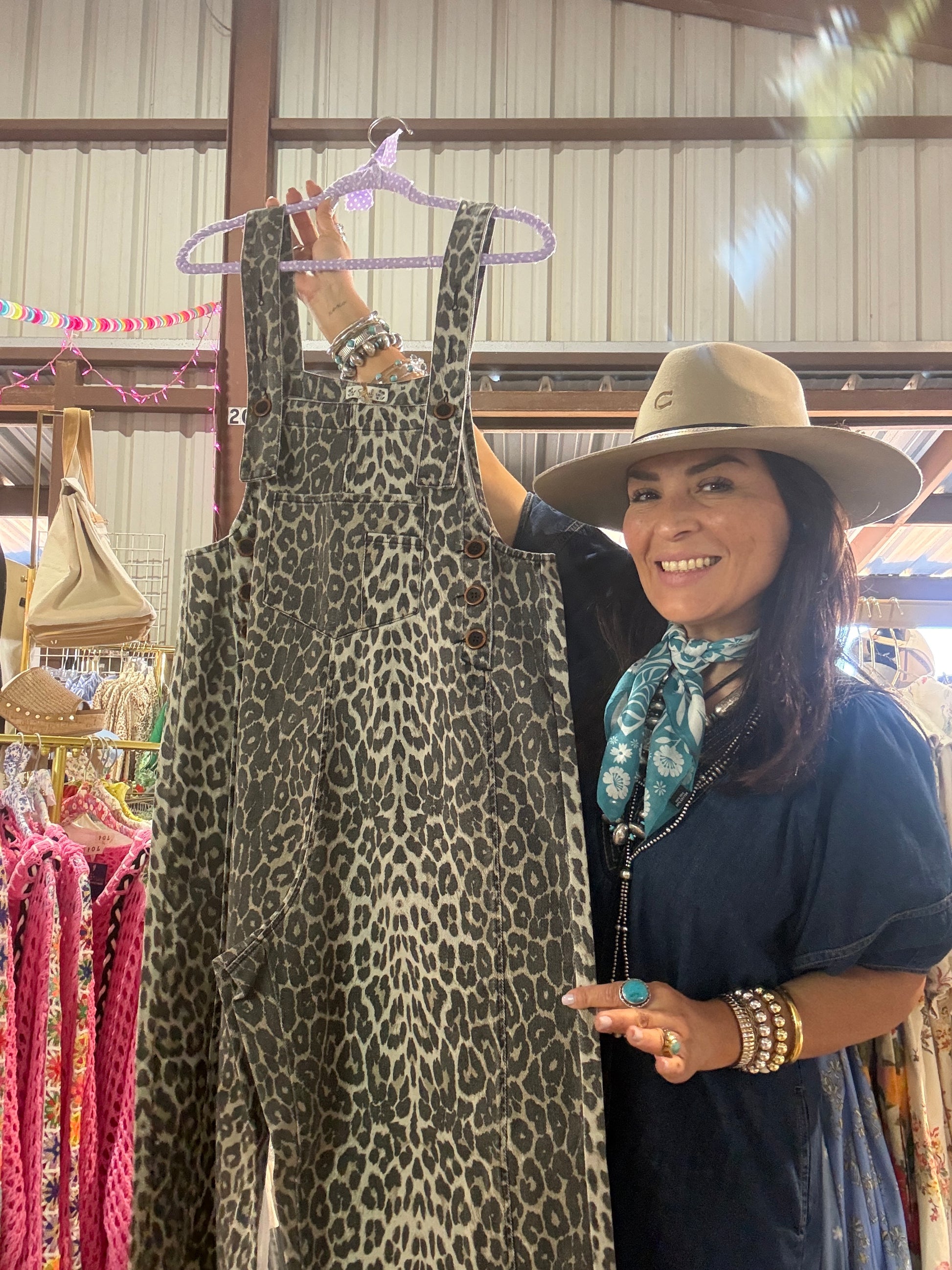 WASHED ANIMAL PRINT TWILL OVERALLS